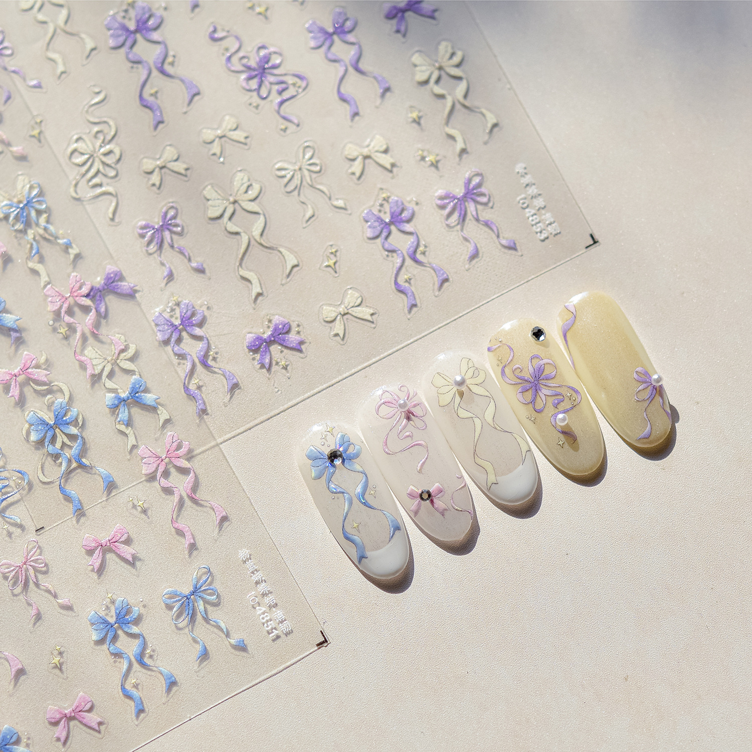Tomoni 얇은 터프 네일 아트 스티커 폭발 일본 어린이 네일 스티커 우아한 활 스티커 네일 아트 혼합