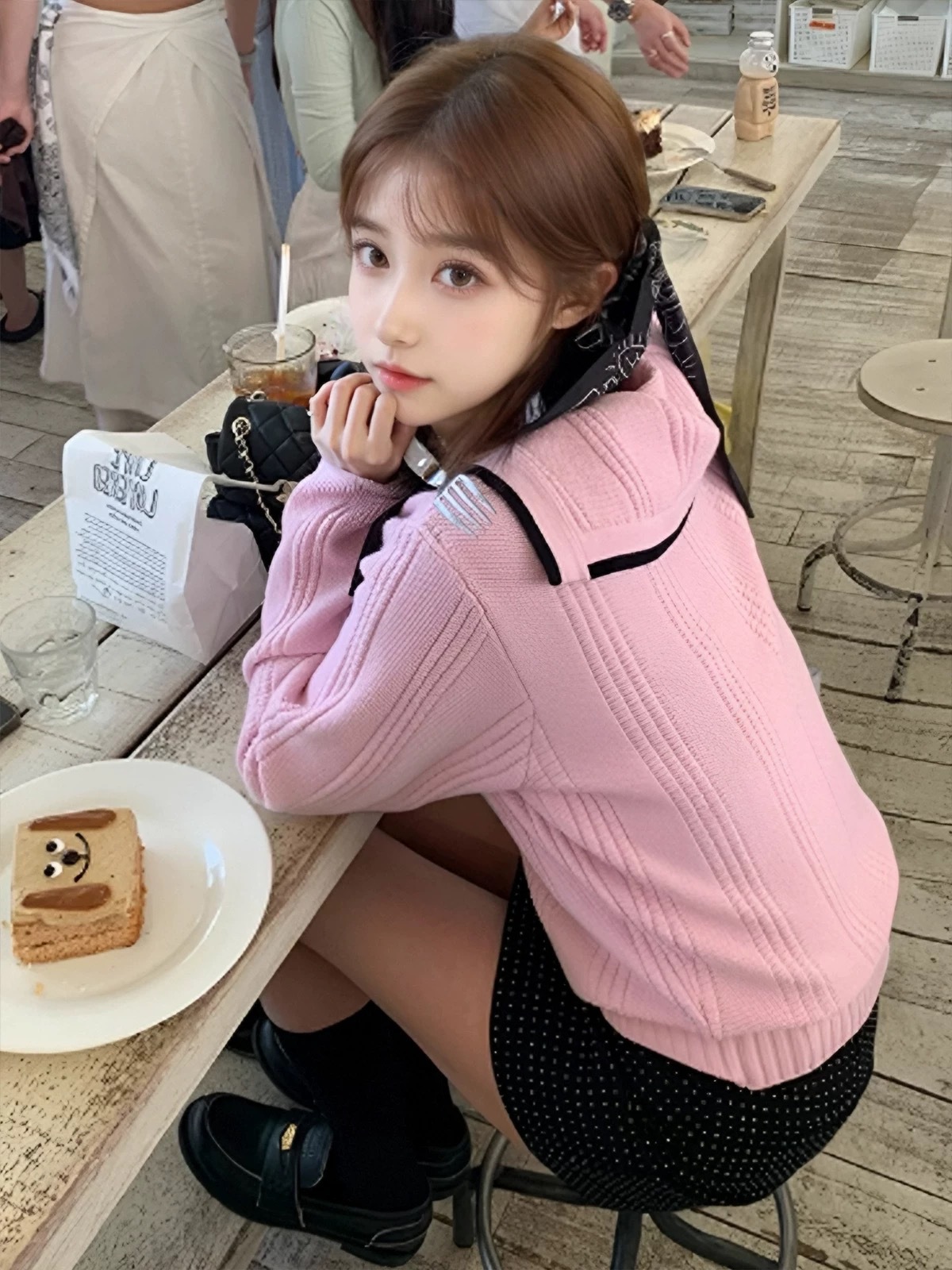 백투 스쿨 한국 여성 대비 게으른 해군 칼라 니트 스웨터 카디건 슬림 우아한 탑