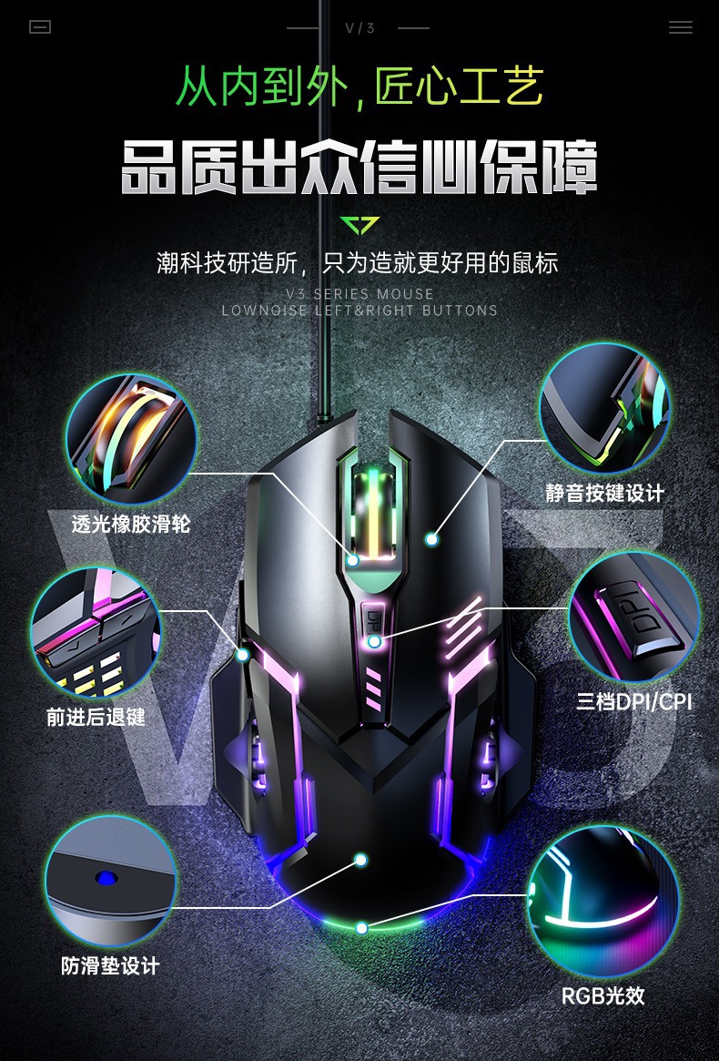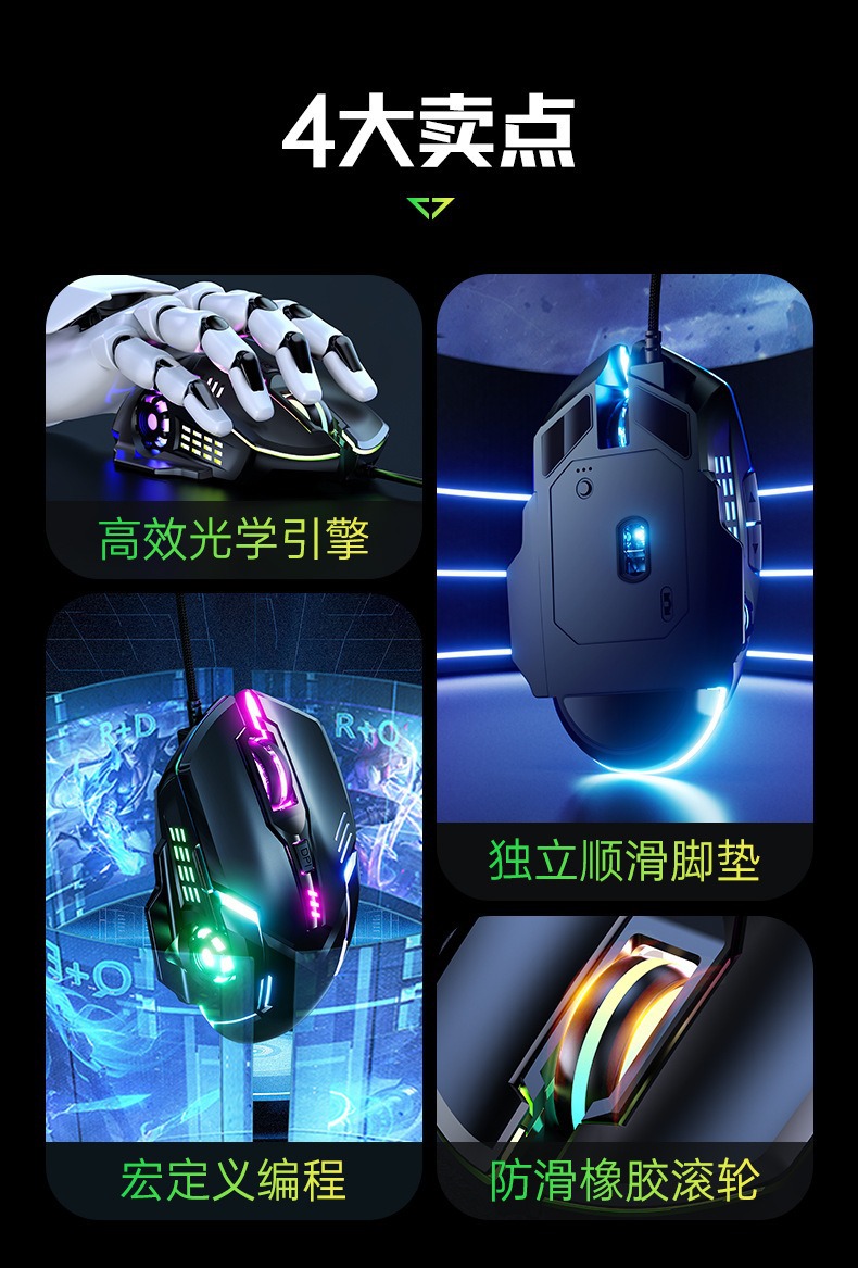 게임 유선 마우스 먹는 치킨 게임 마우스 6 키 매크로 정의 튠 DPI 빛나는 손가락 마우스 국경스토어 가기
