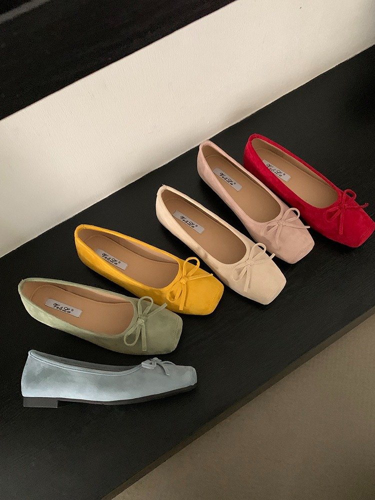 부드러운 스타일 발레 무당 신발 플랫 여성 2025 프랑스 스타일 캔디 컬러 부드러운 바닥 실버 활 레드 싱글 신발스토어 가기