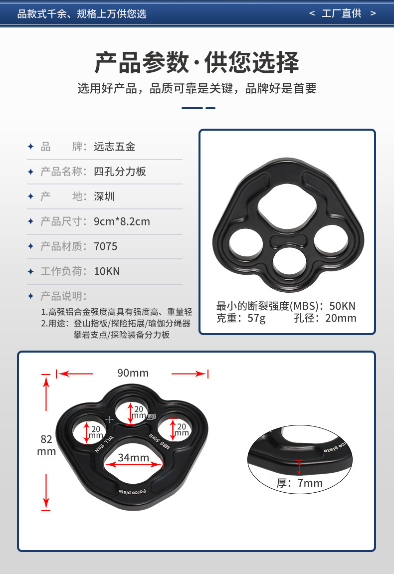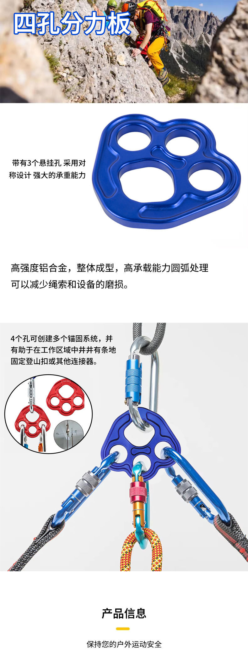 새로운 야외 앵커 스플리터 등반 구조 4 홀 포스 스플리터 등산 핑거 보드 어드벤처 하중지지 로프 스플리터스토어 가기