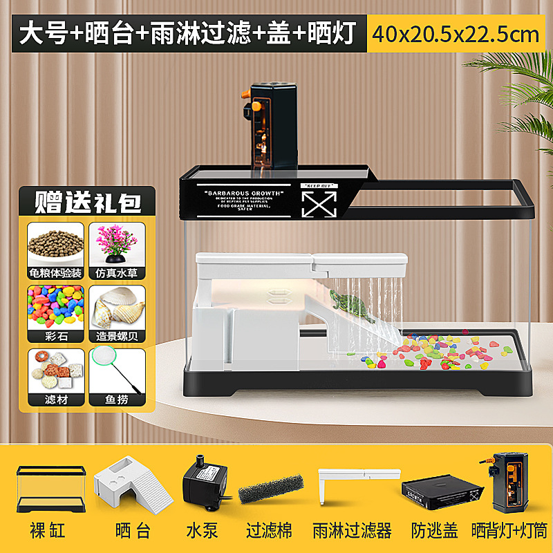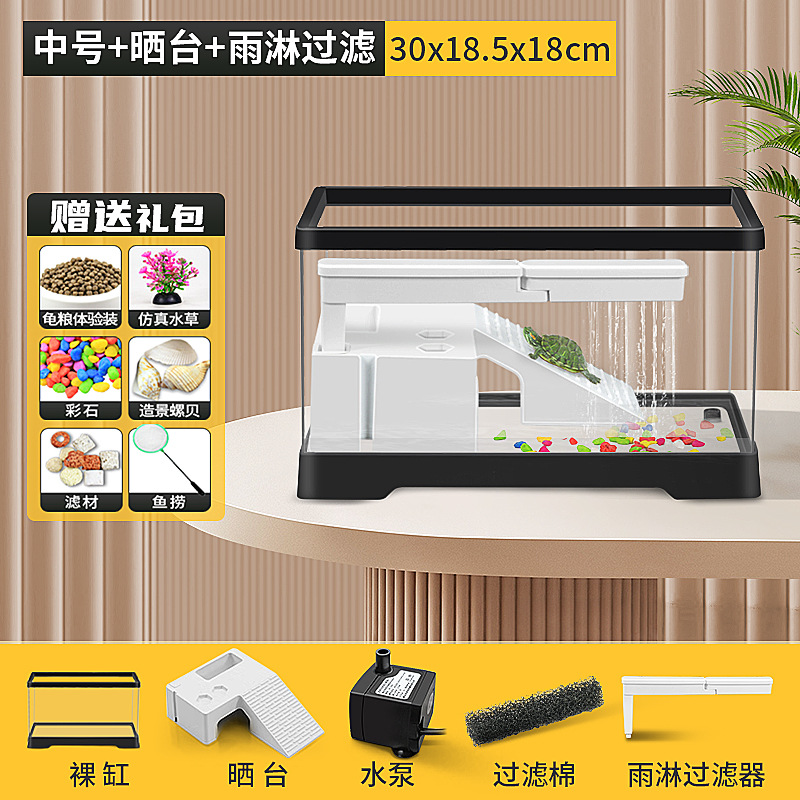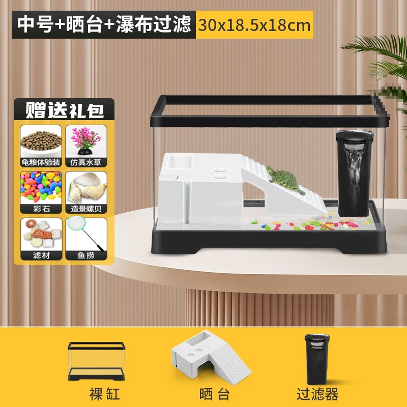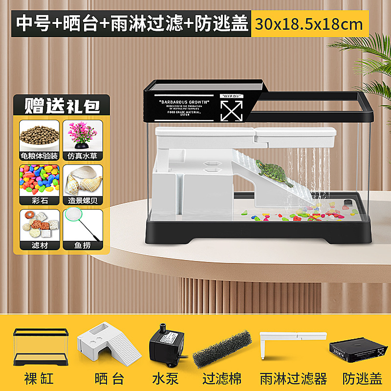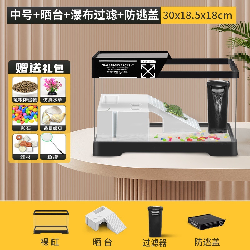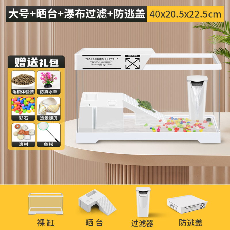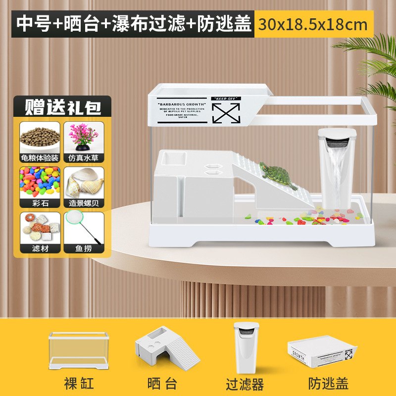 • [중형 흰색 네이키드 탱크 + 테라스 + 폭포 필터 + 탈출 방지 커버] + 선물 패키지