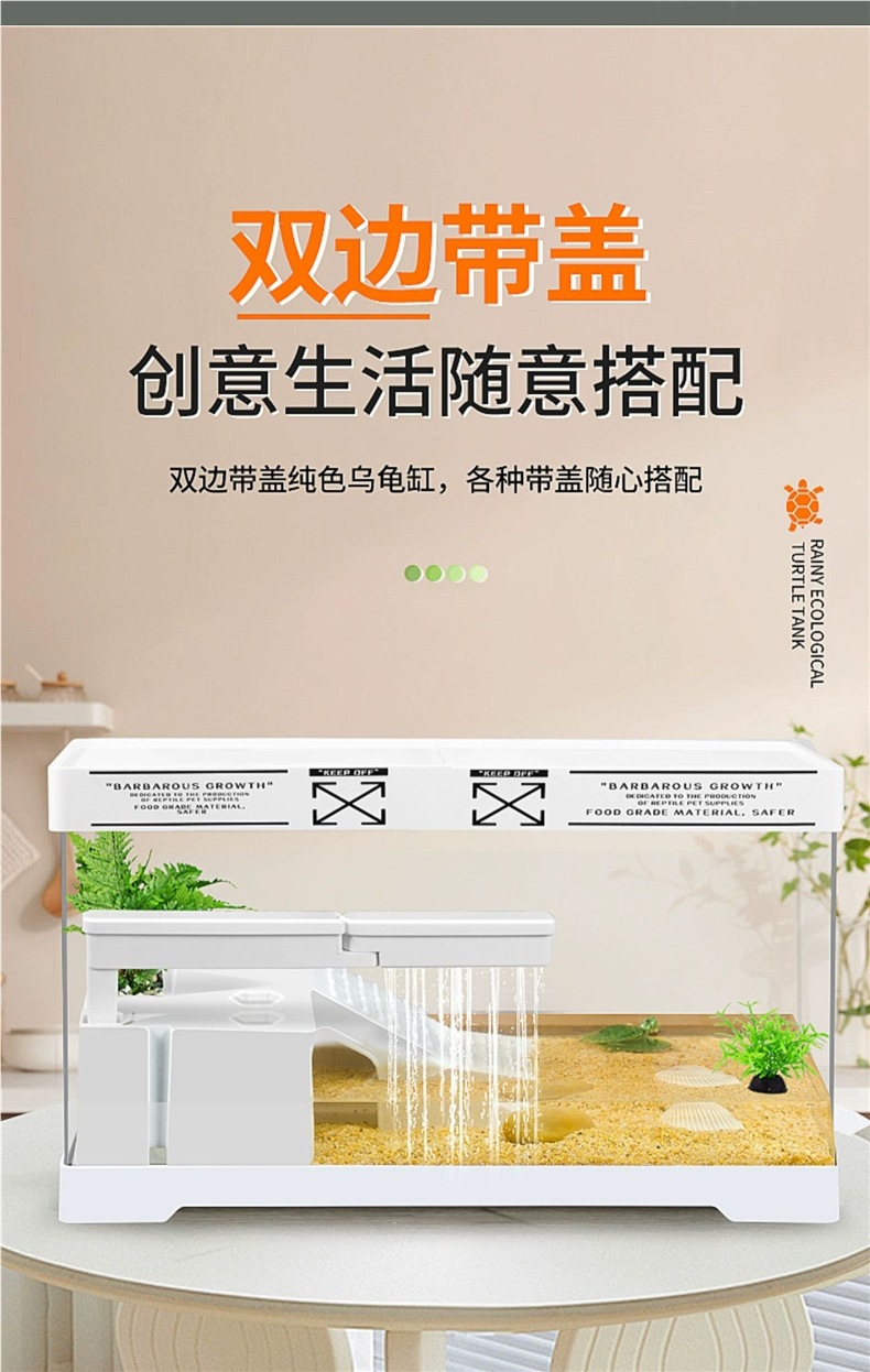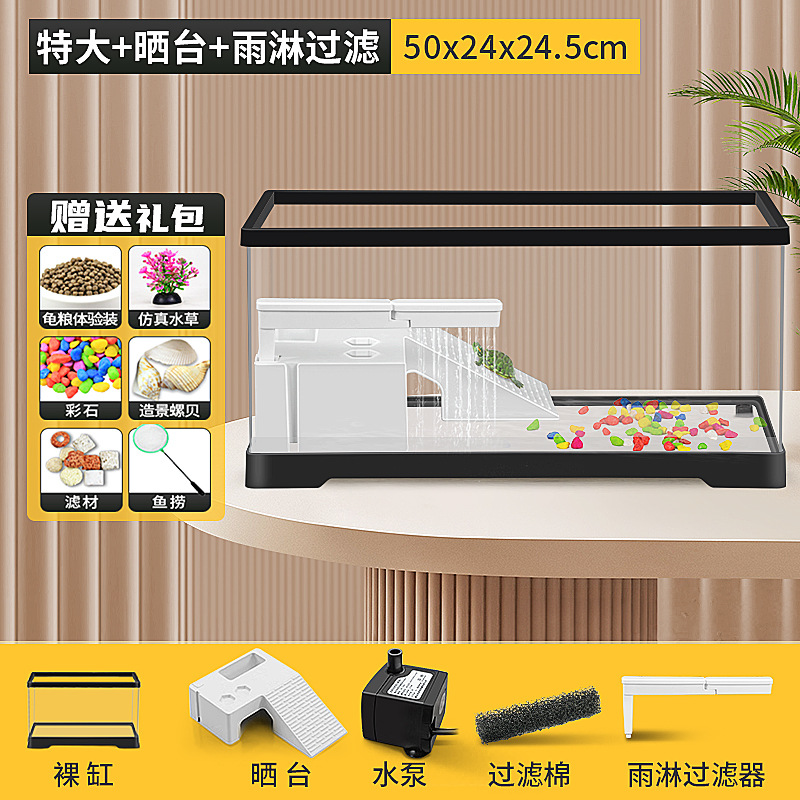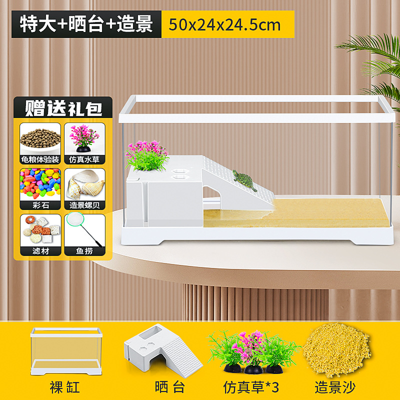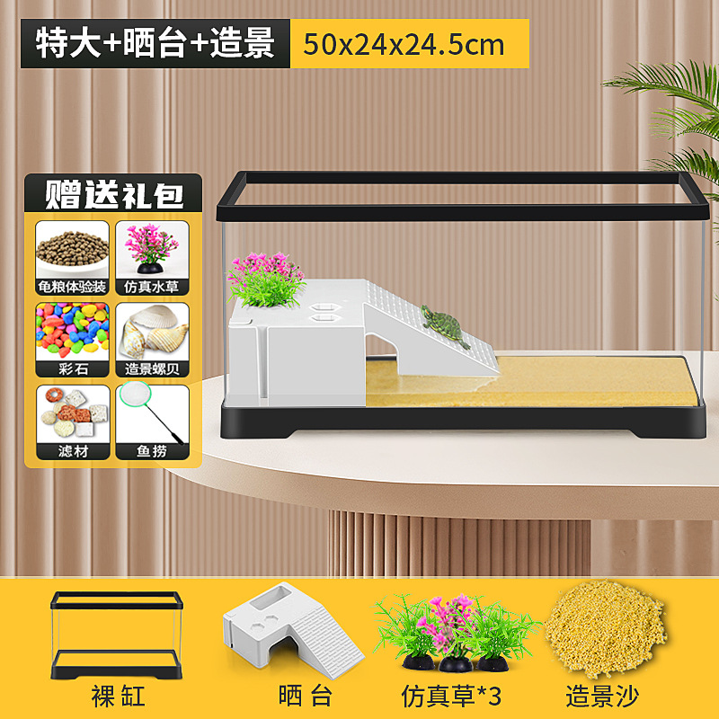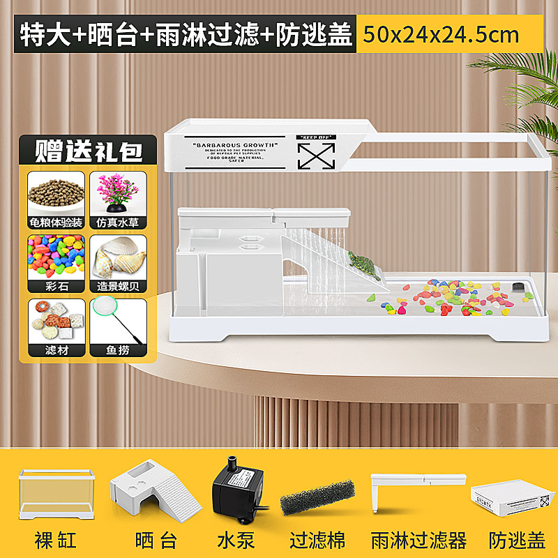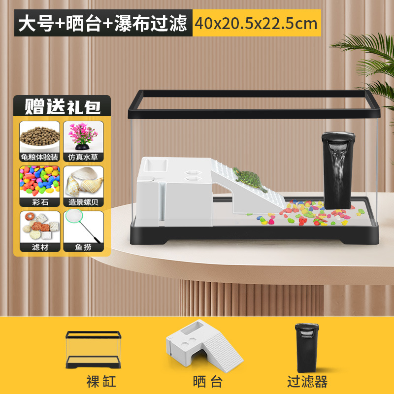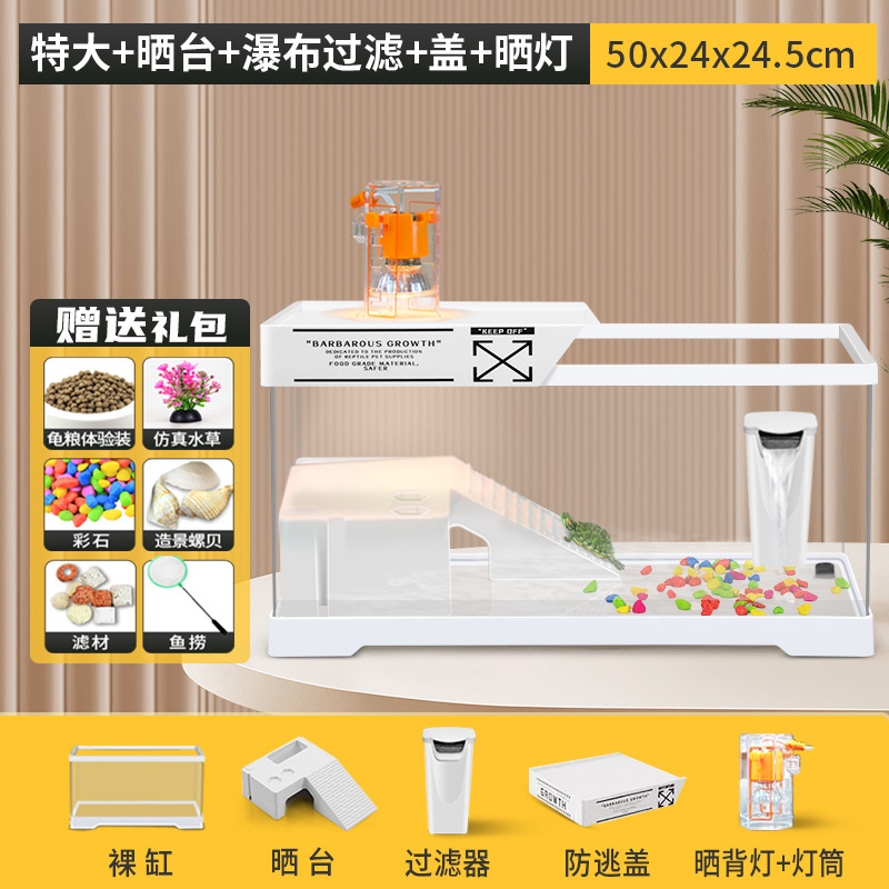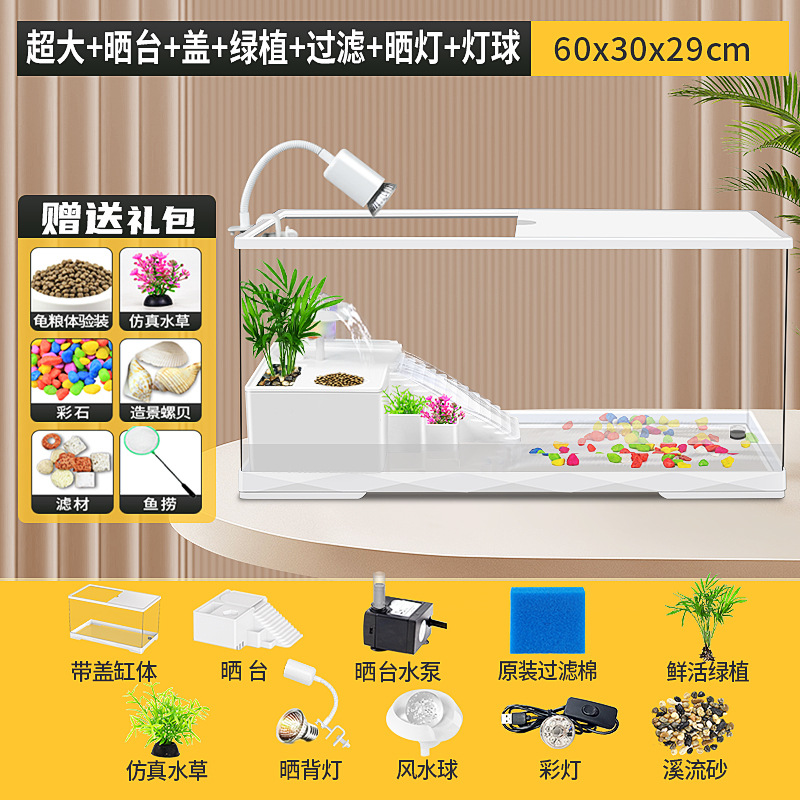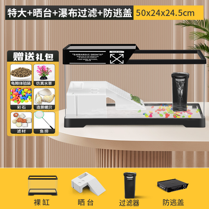 거북이 수유 탱크 가정용 거북이 먹이 상자 햇빛과 등반 테이블 빌라 생태 풍경 거북이 탱크 커버 어류 탱크스토어 가기