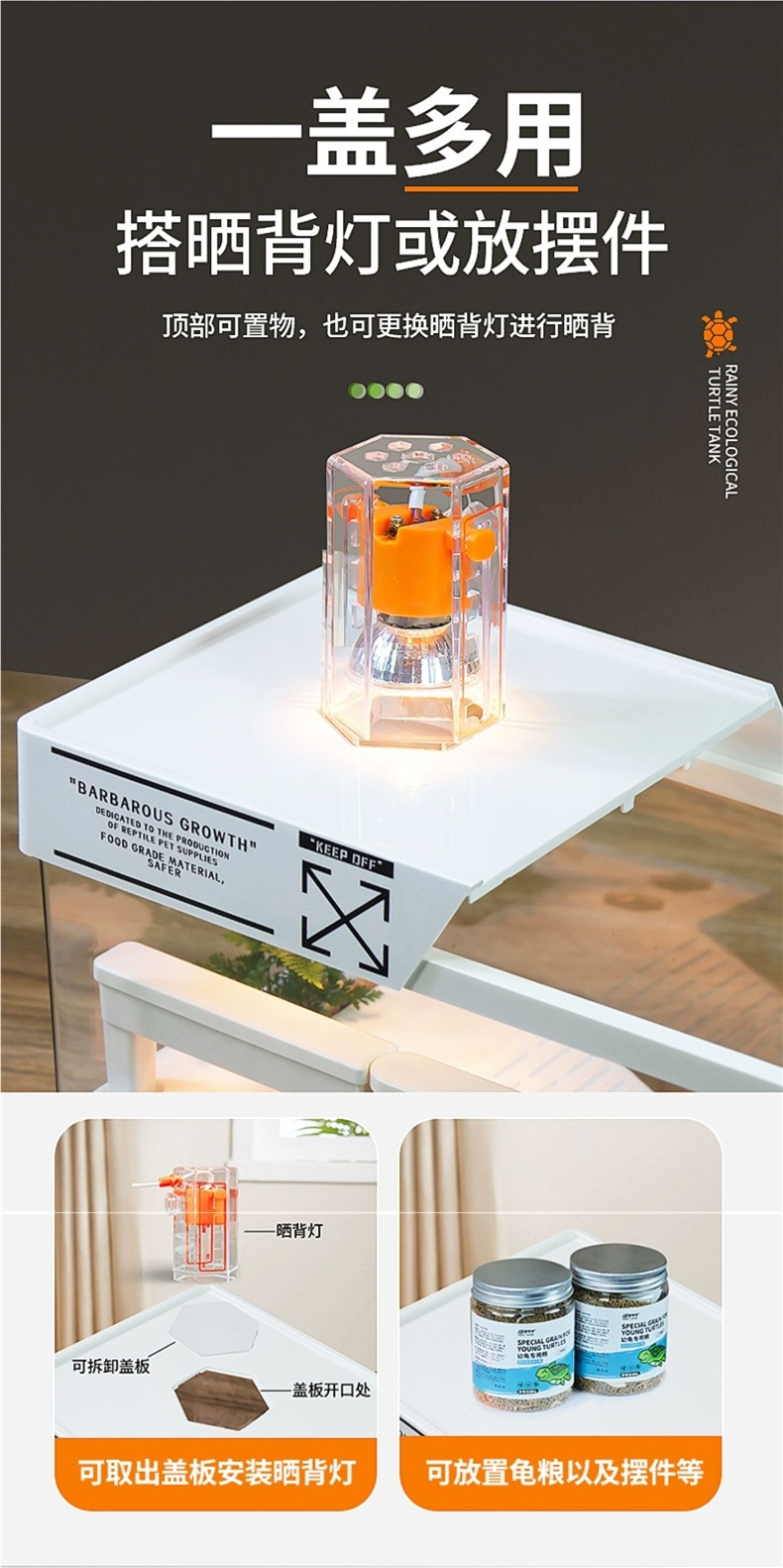 거북이 수유 탱크 가정용 거북이 먹이 상자 햇빛과 등반 테이블 빌라 생태 풍경 거북이 탱크 커버 어류 탱크