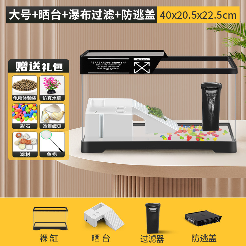 • [중형 검정색 네이키드 탱크 + 테라스 + 폭포 필터 + 탈출 방지 커버] + 선물 패키지