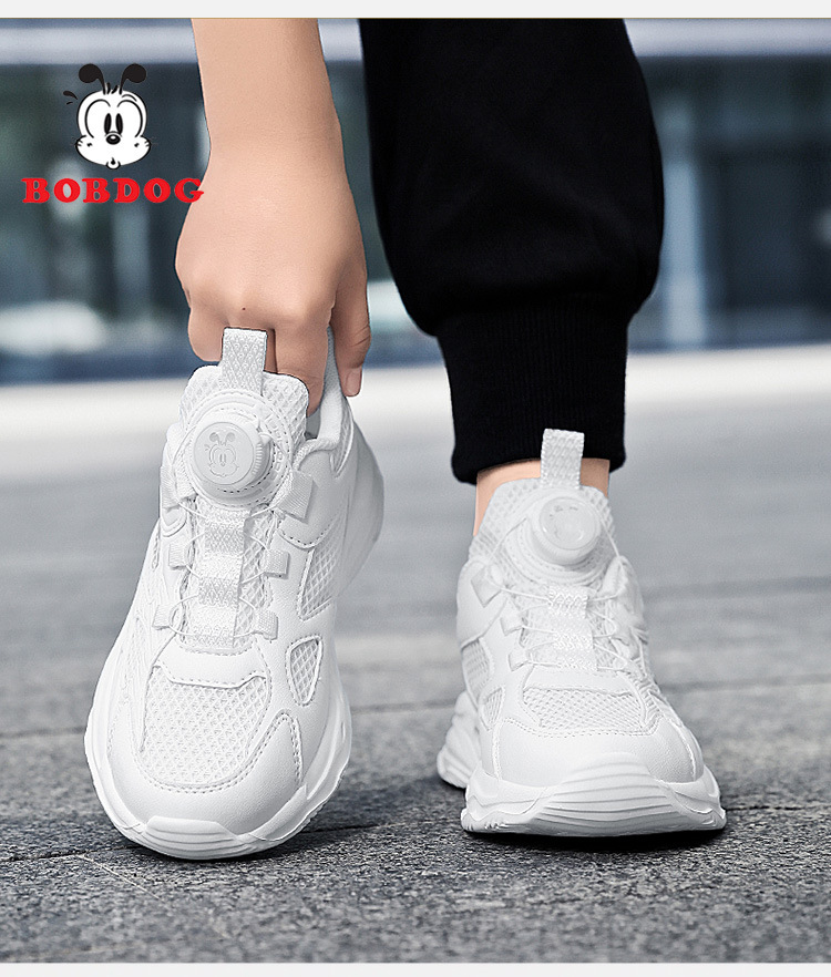 바부 콩 어린이 신발 어린이 흰색 운동화 봄과 가을 메쉬 통기성 소년 회전 버튼 작은 흰색 신발 소녀스토어 가기