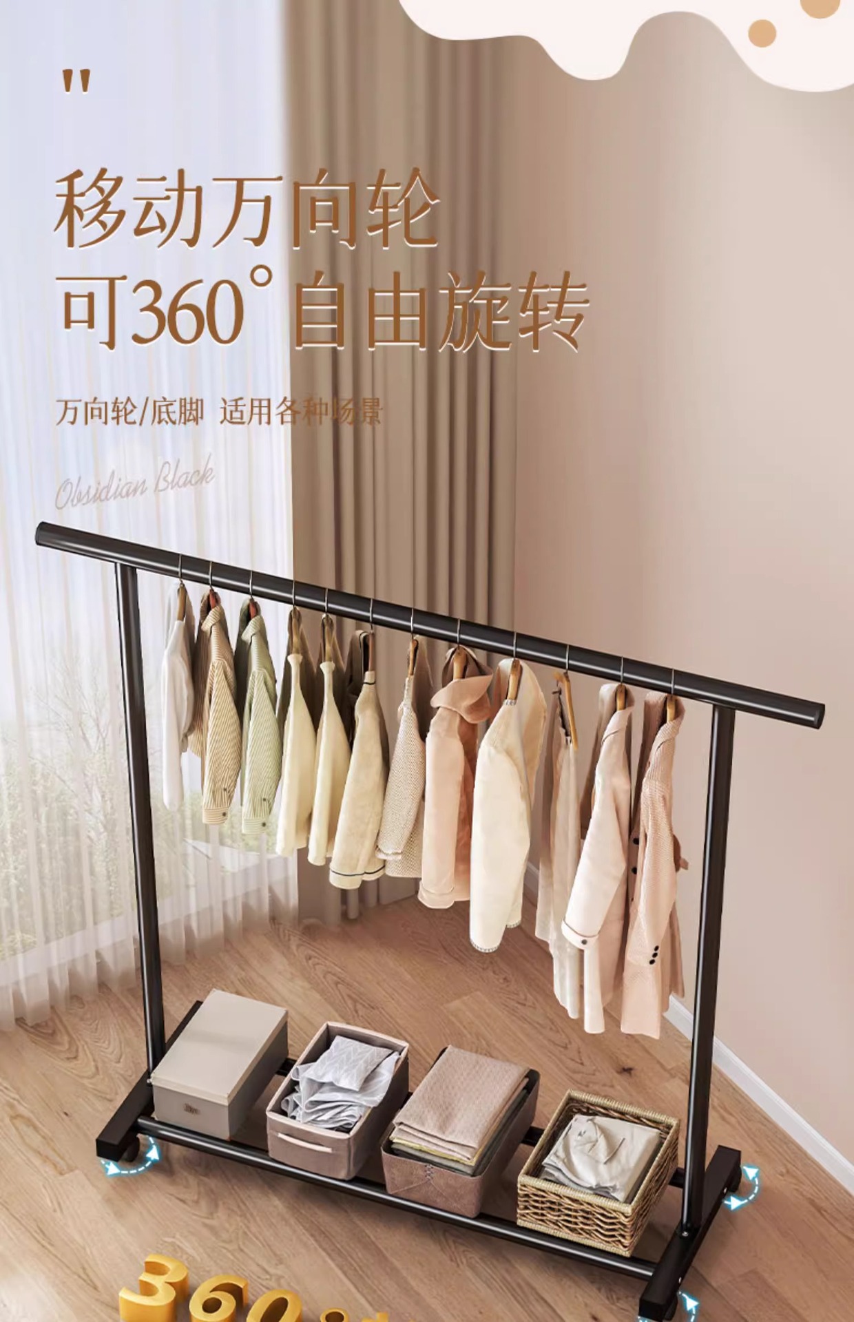 • 150cm-흑요석 블랙 [단극 25관 두꺼워짐] 유니버설 휠