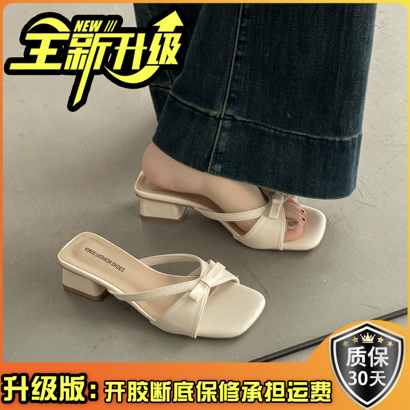 늦은 저녁 스타일 프랑스 스타일 스퀘어 활 슬리퍼 여성용 봄과 여름 스커트 샌들이 달린 새로운 하이 엔드 아우터웨어스토어 가기