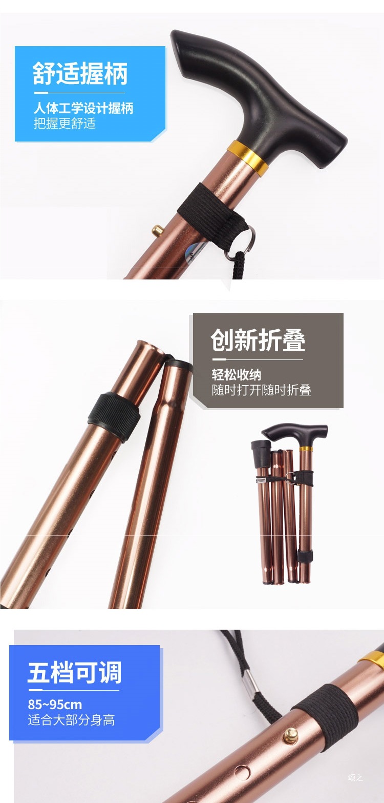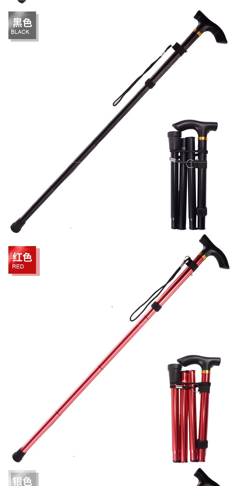 노인을위한 다기능 등산 스틱 망원경 접이식 하이킹 스틱 알루미늄 합금 미끄럼 방지 목발