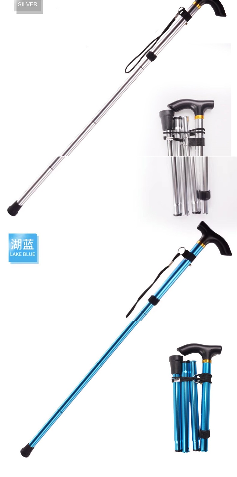 • [블랙 + 블루] 알루미늄 합금 접이식 목발
