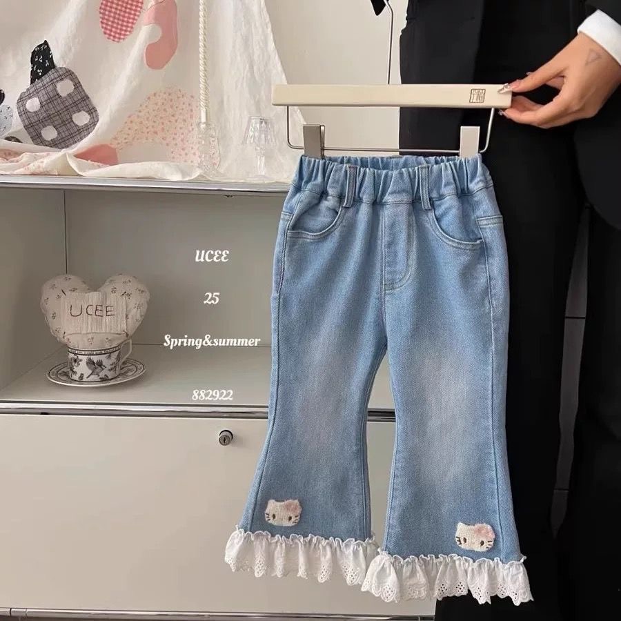 여아 바지 봄 가을 2025 신상 아기 캐주얼 긴바지 아동복 어린이 데님 나팔바지 중소형 아동용