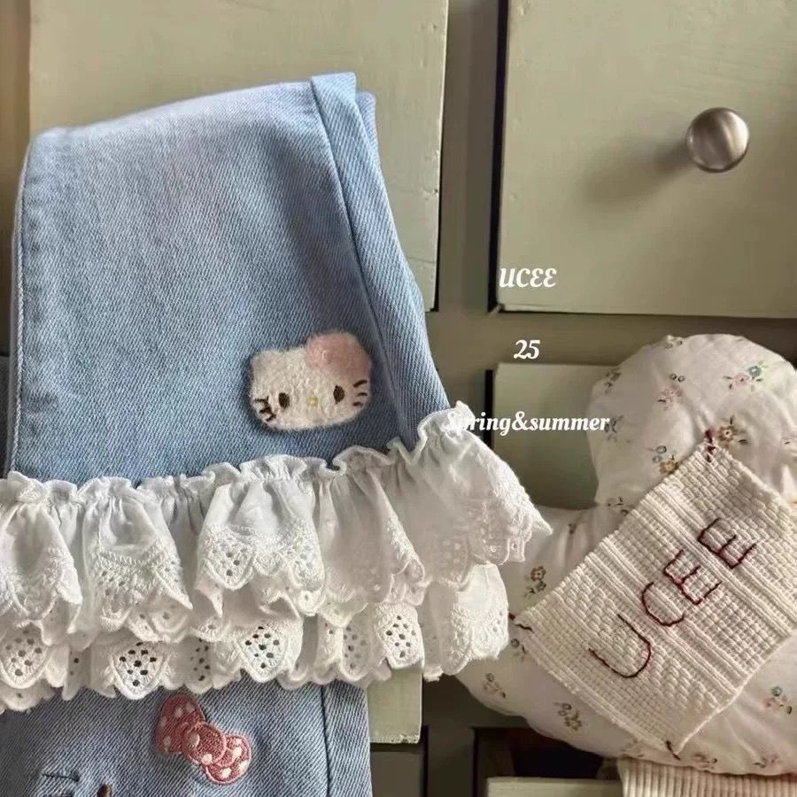 여아 바지 봄 가을 2025 신상 아기 캐주얼 긴바지 아동복 어린이 데님 나팔바지 중소형 아동용스토어 가기