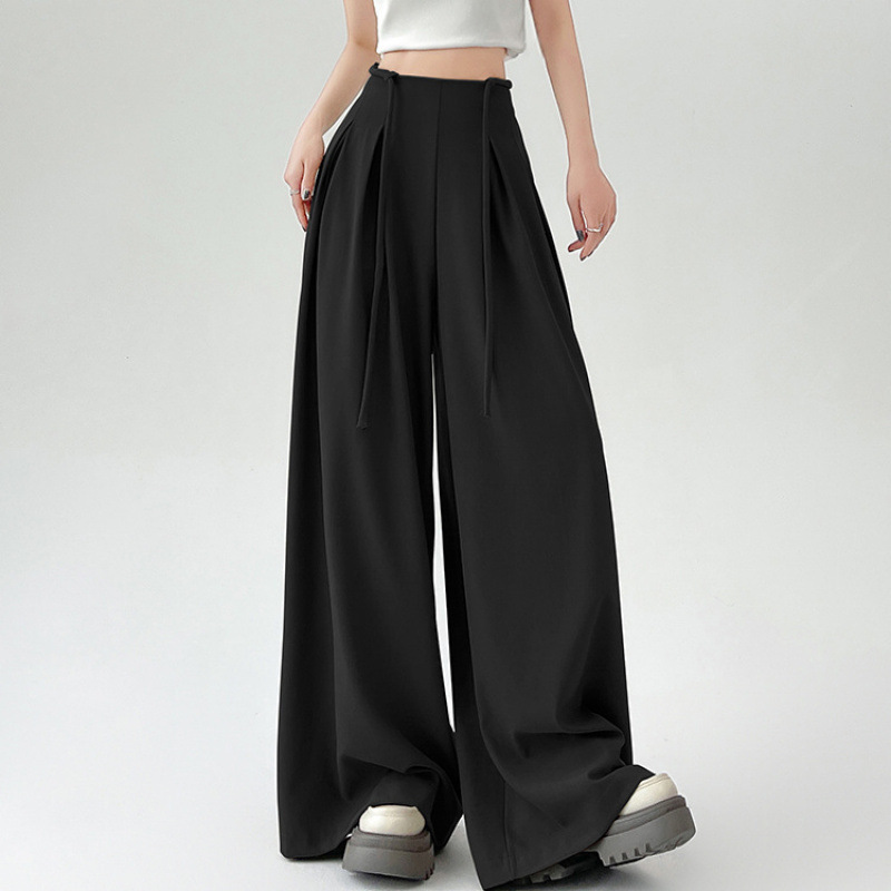 西装阔腿裤女系带设计感垂感显瘦高腰窄版直筒休闲拖地裤百搭韩版