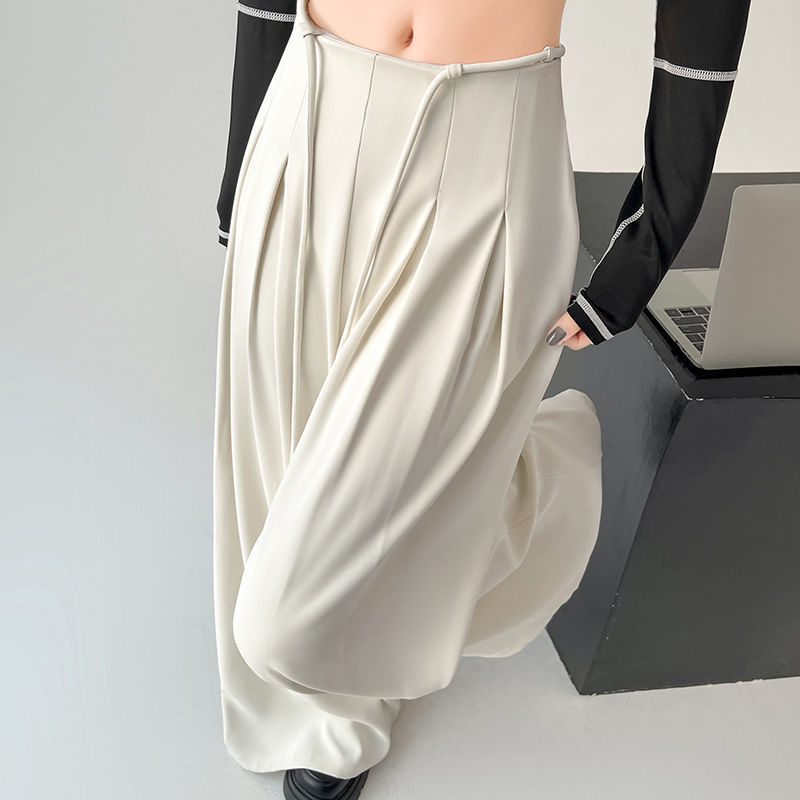 레이스 업 디자인 감각이있는 여자 와이드 레그 세트 바지 슬림 높은 허리 좁은 버전 스트레이트 캐주얼 바지 올 매치 한국 스타일스토어 가기