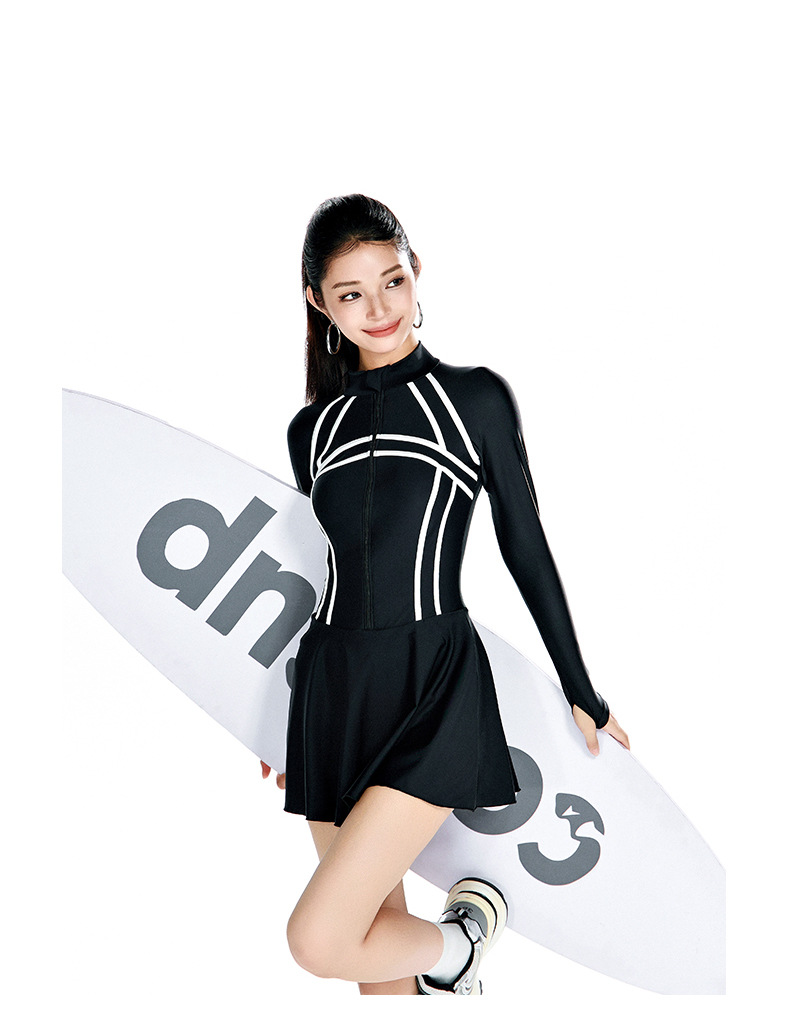 수영복 여성 성인 2025 새로운 줄무늬 긴팔 몸-슬리밍 높은 수준의 온천 수영스토어 가기