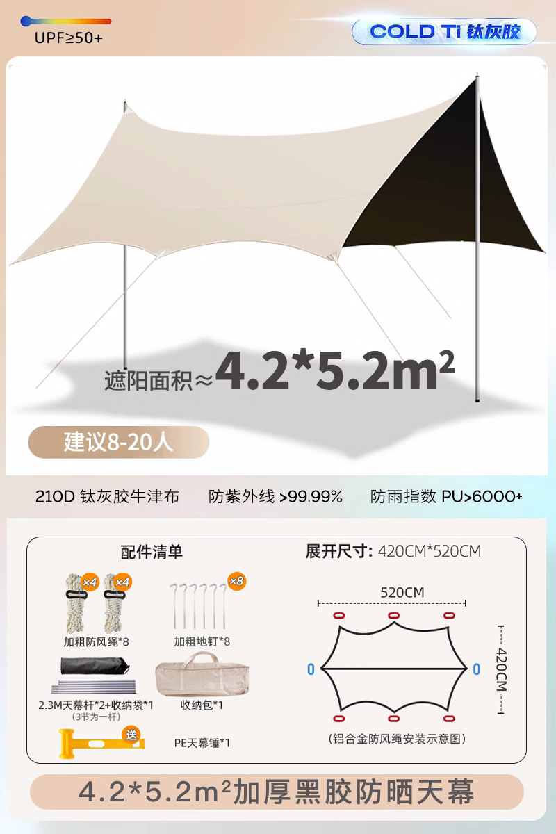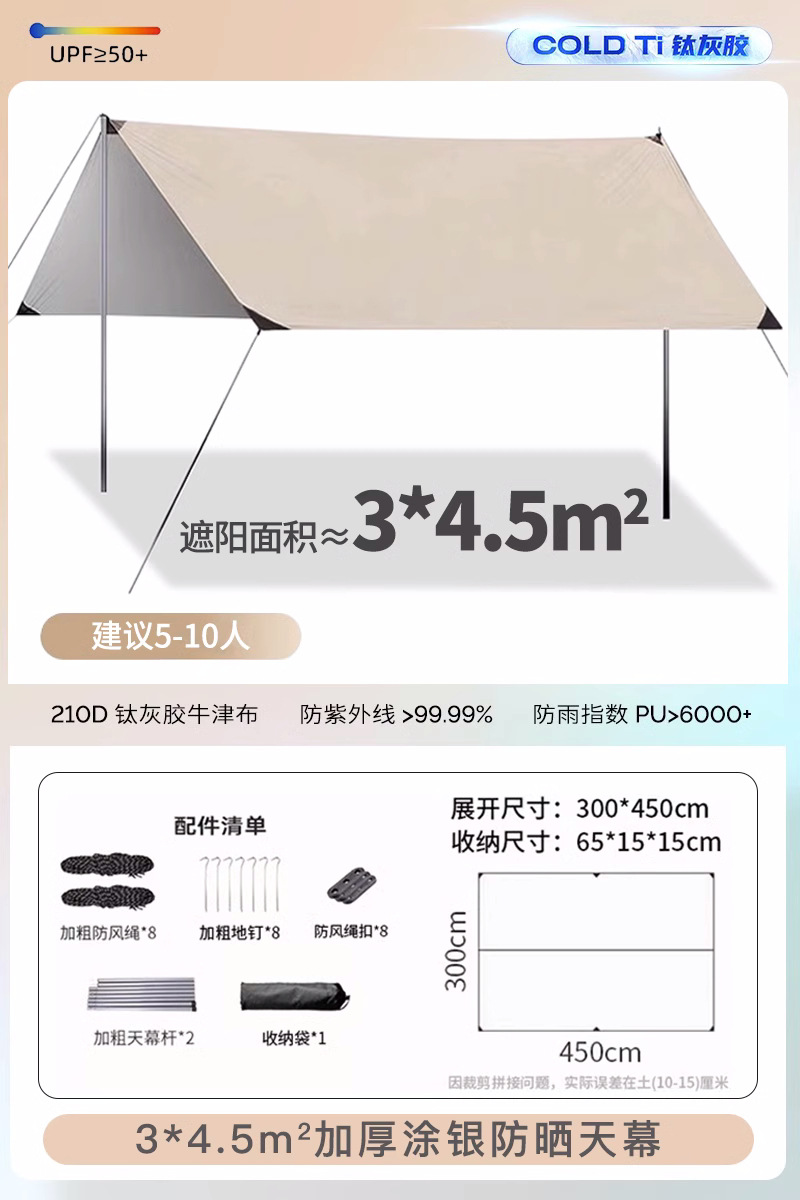 • Quicksand Gold [4.5*6m] 완전 암막 자외선 차단 콜드 티타늄 실버 코팅 - 8~20인 권장