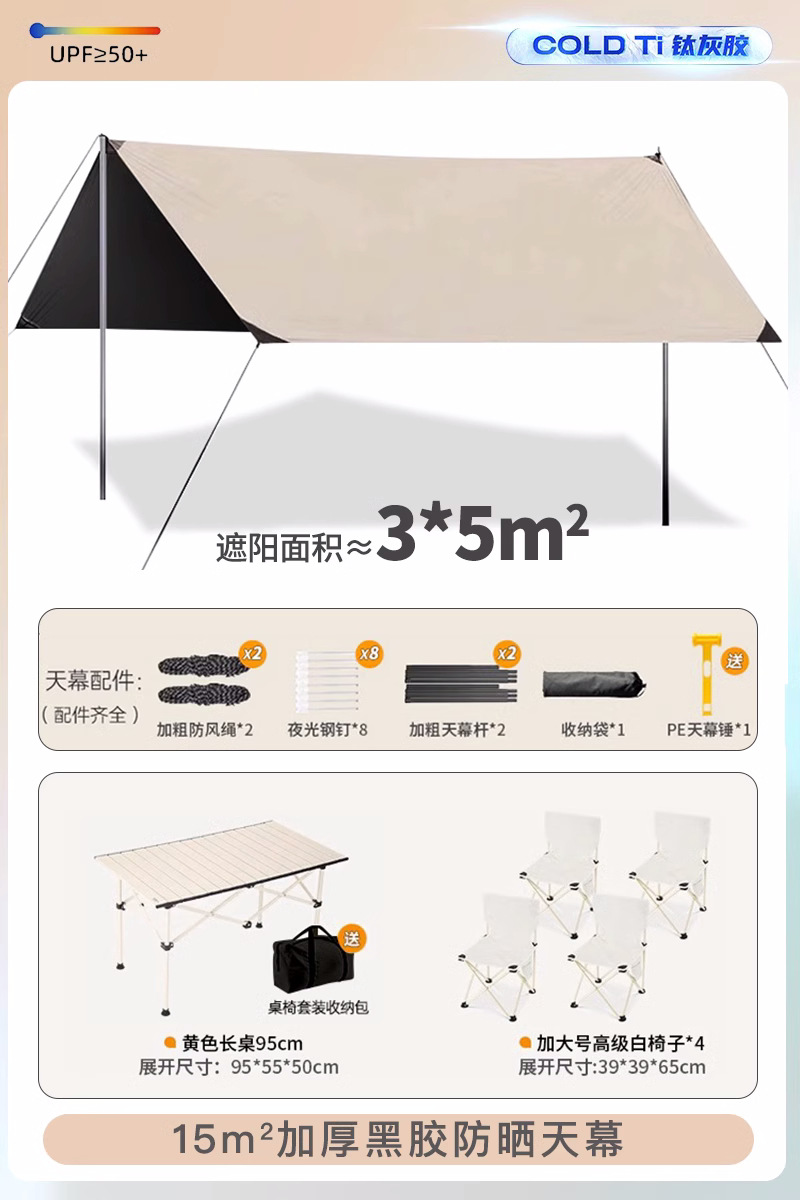 • Quicksand Gold [3*5m] 완전 암막 자외선 차단제 콜드 티타늄 실버 코팅 - 6~12인 권장