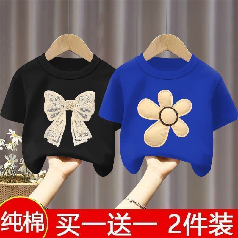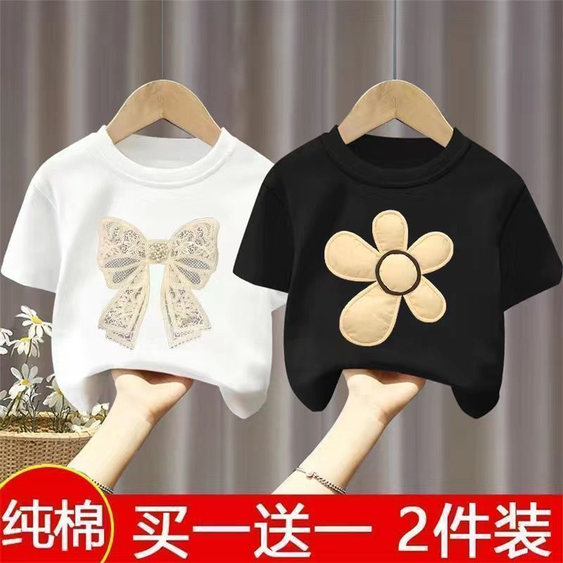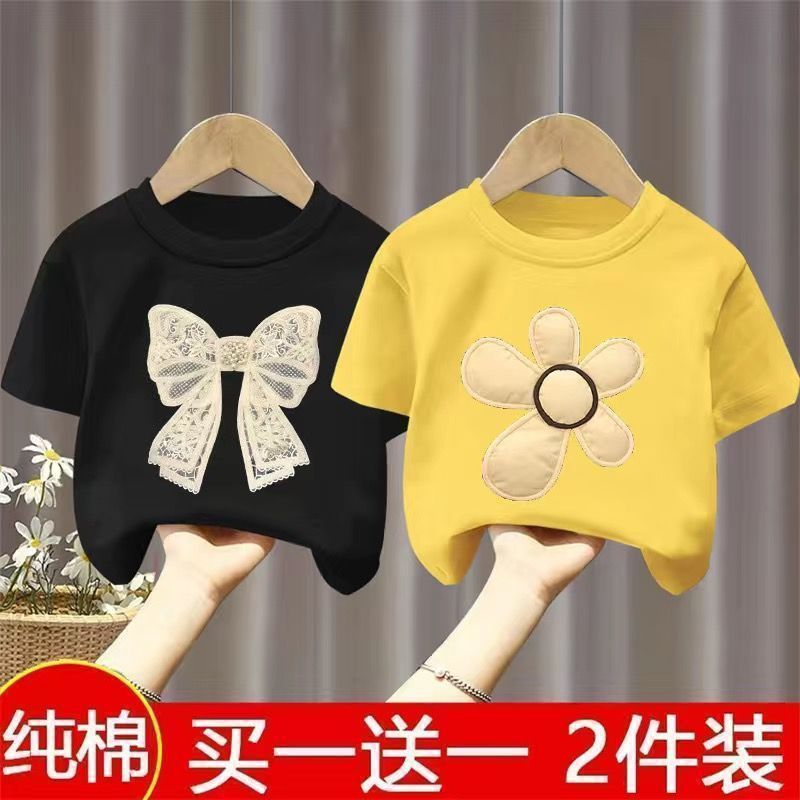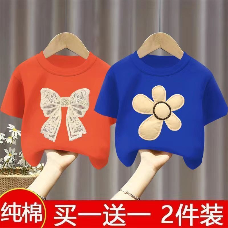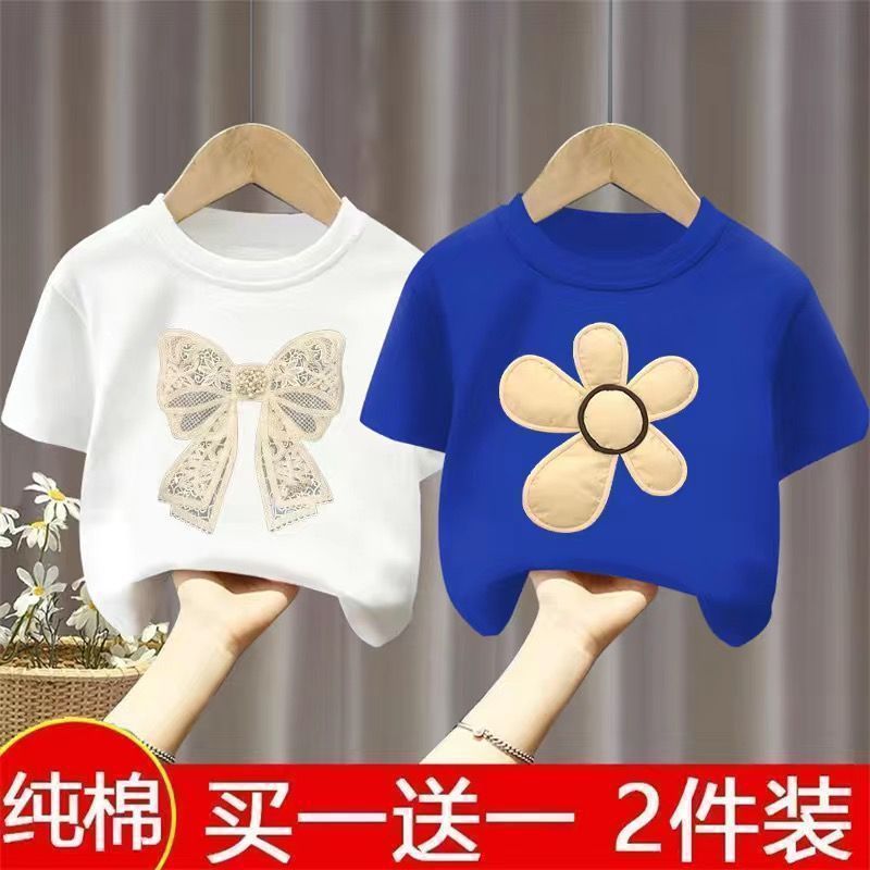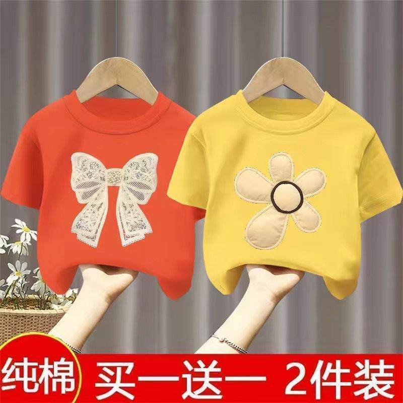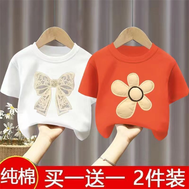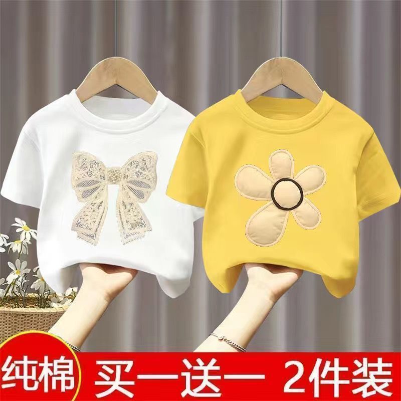 소녀 반팔 티셔츠 여름 2023 새로운 서양식 어린이 한국식 느슨한 캐주얼 탑 어린 소녀베이스 12스토어 가기