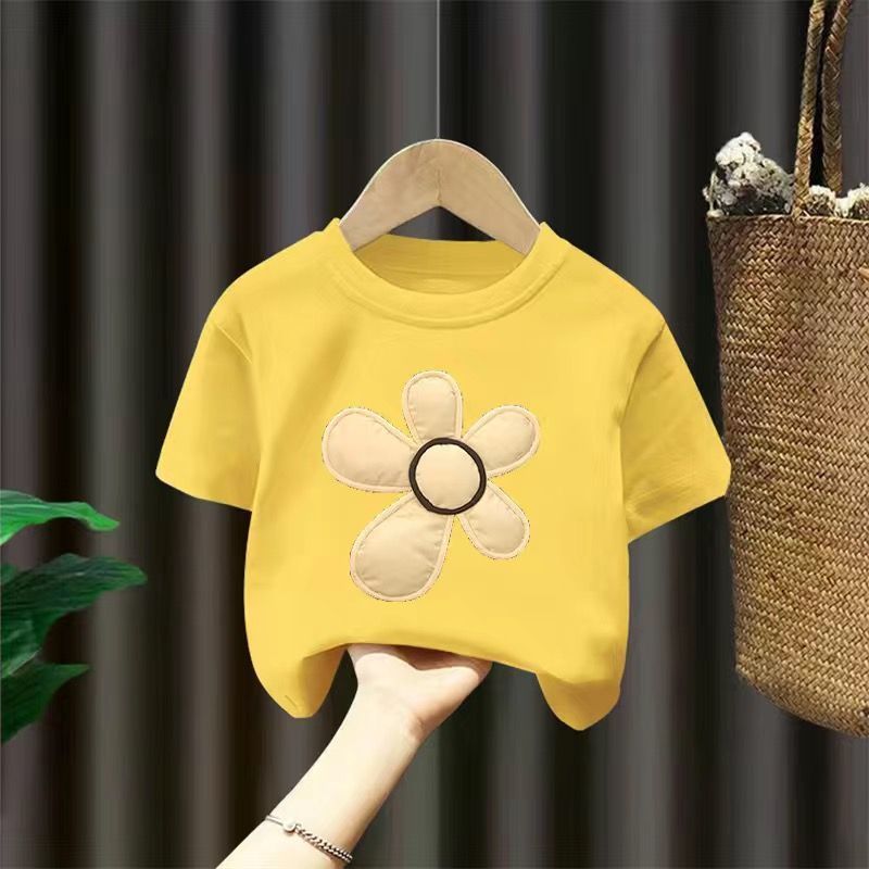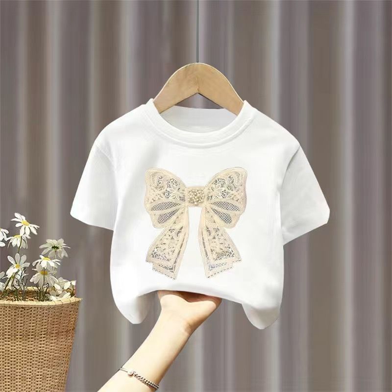 소녀 반팔 티셔츠 여름 2023 새로운 서양식 어린이 한국식 느슨한 캐주얼 탑 어린 소녀베이스 12
