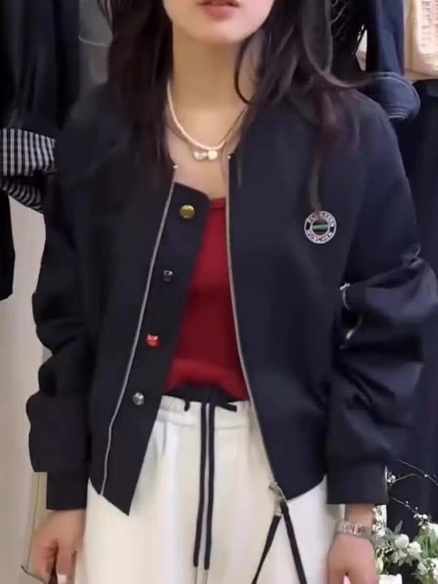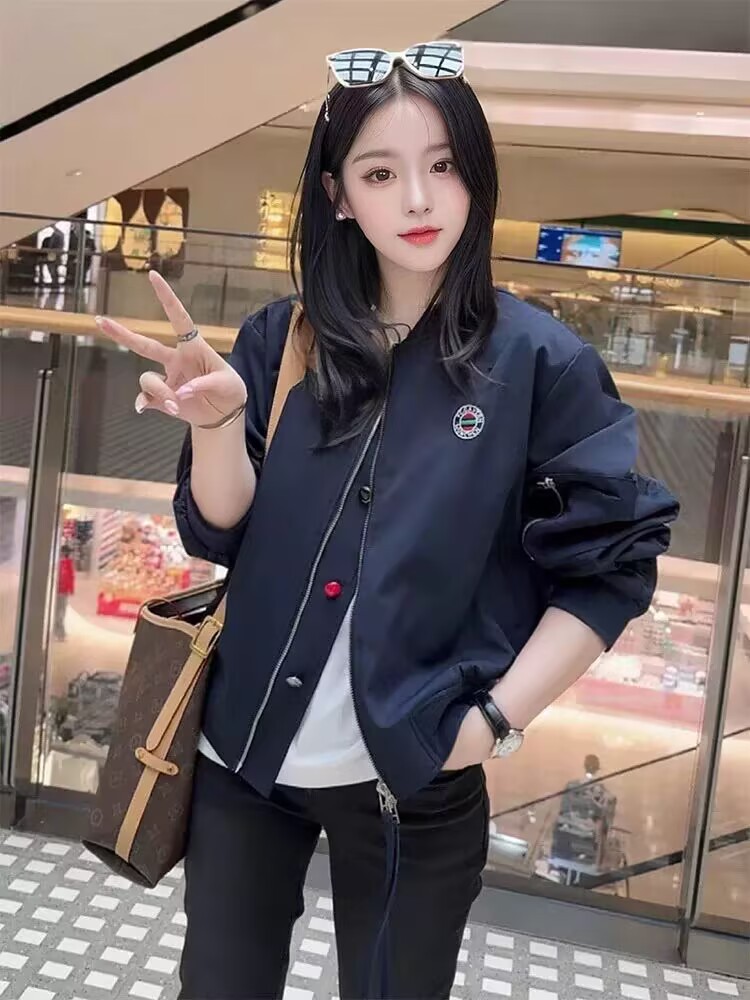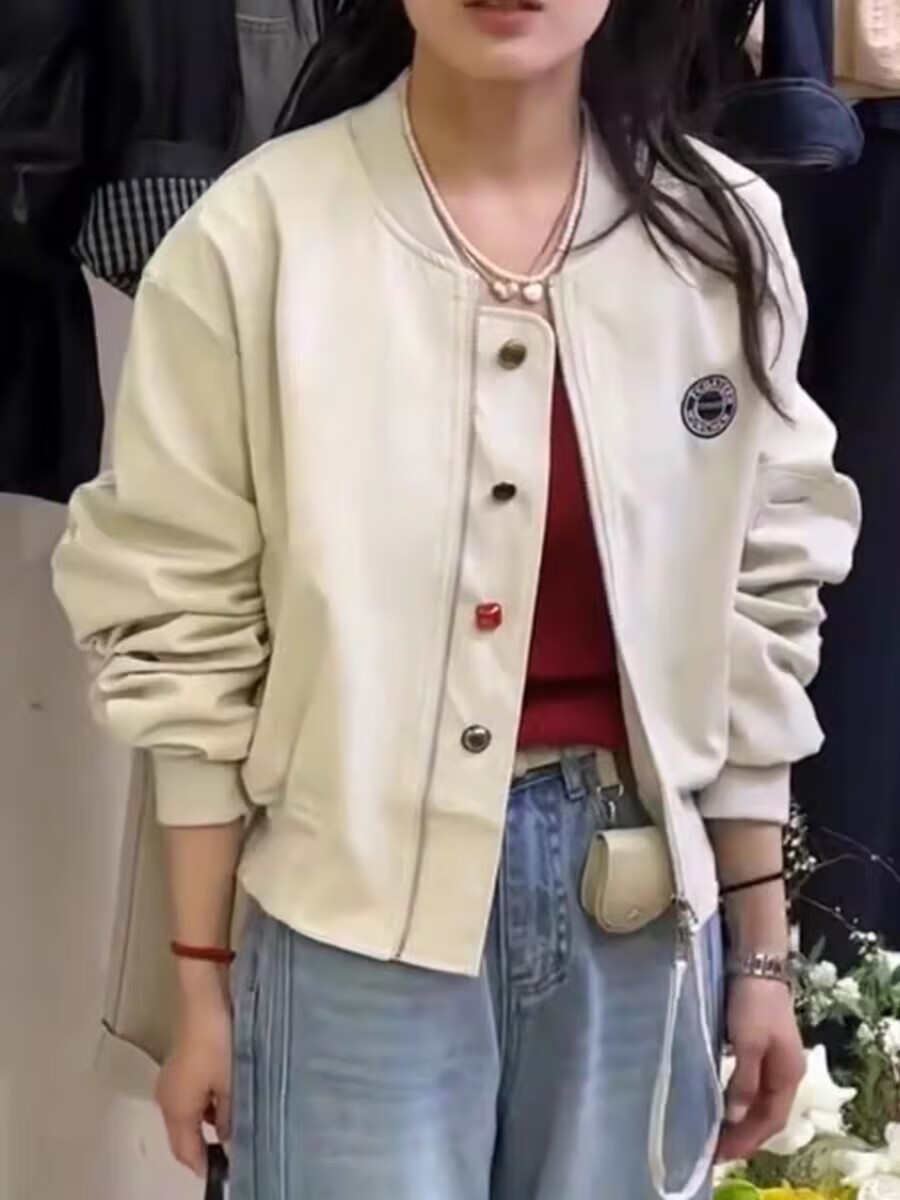 여성을위한 스팟 컬러 버튼 야구 재킷 25 봄 새로운 스타일 느슨하고 다재다능한 연령 감소 짧은 재킷 유행스토어 가기