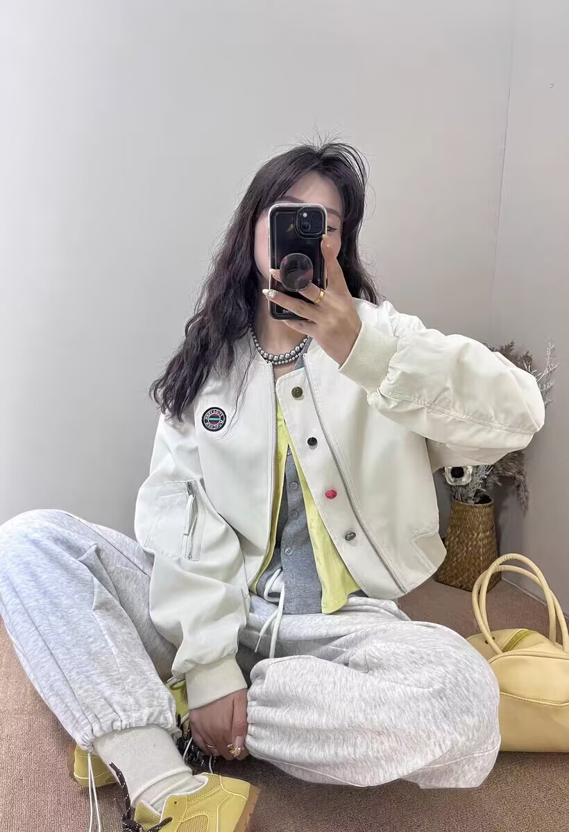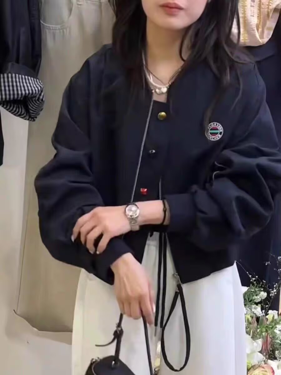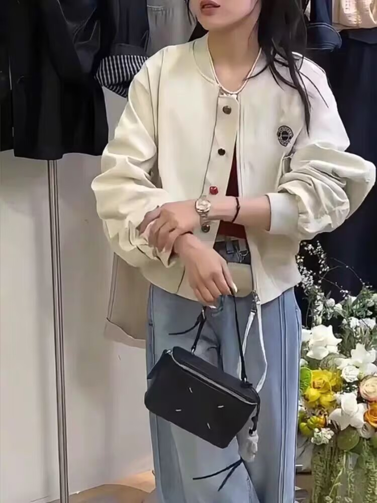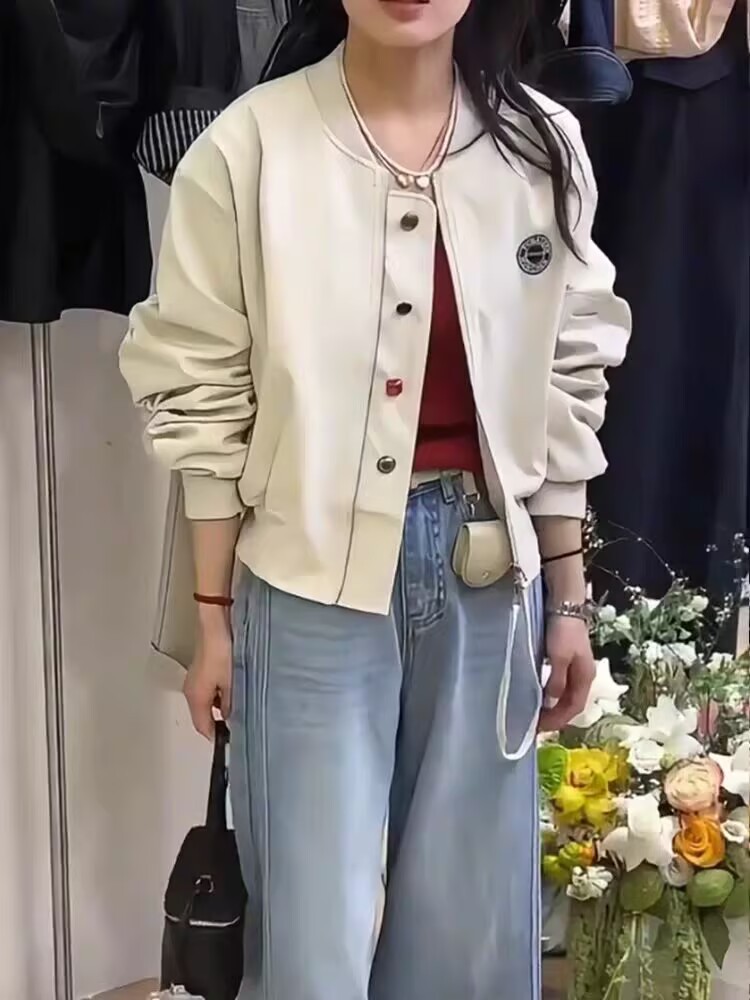 여성을위한 스팟 컬러 버튼 야구 재킷 25 봄 새로운 스타일 느슨하고 다재다능한 연령 감소 짧은 재킷 유행스토어 가기