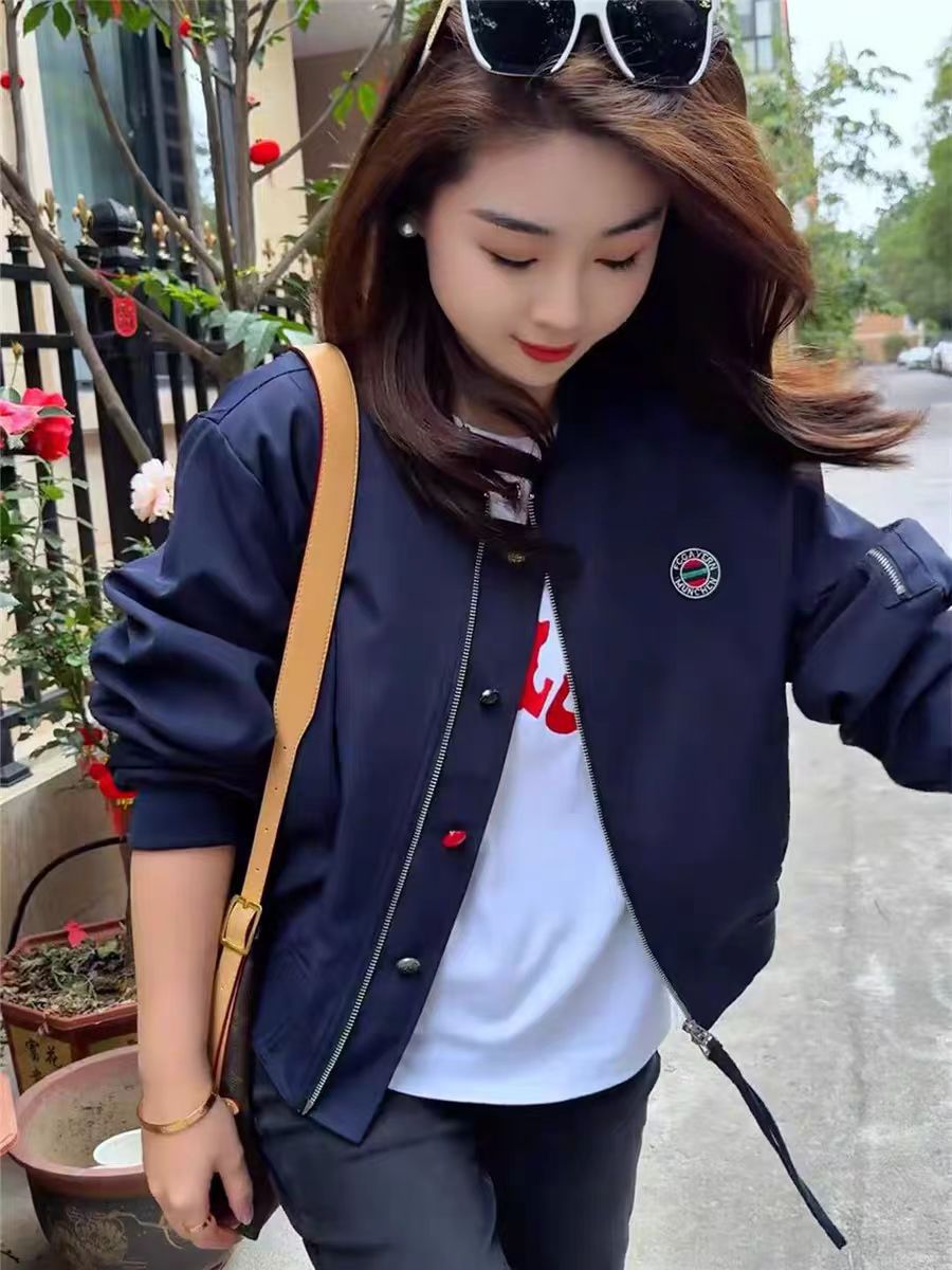 여성을위한 스팟 컬러 버튼 야구 재킷 25 봄 새로운 스타일 느슨하고 다재다능한 연령 감소 짧은 재킷 유행