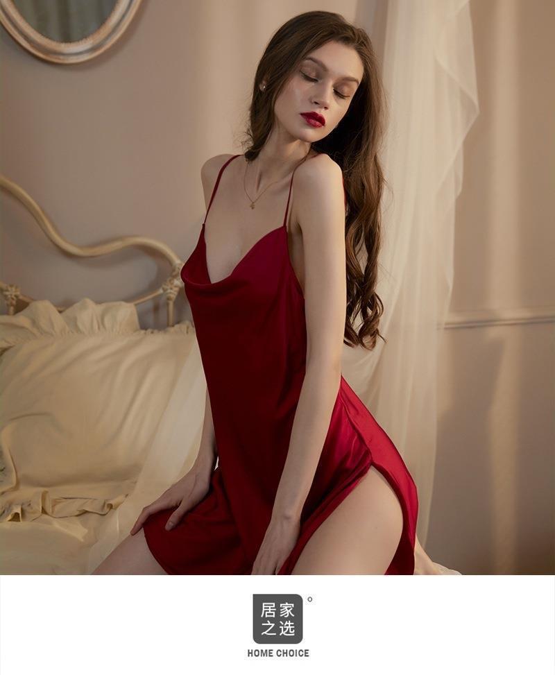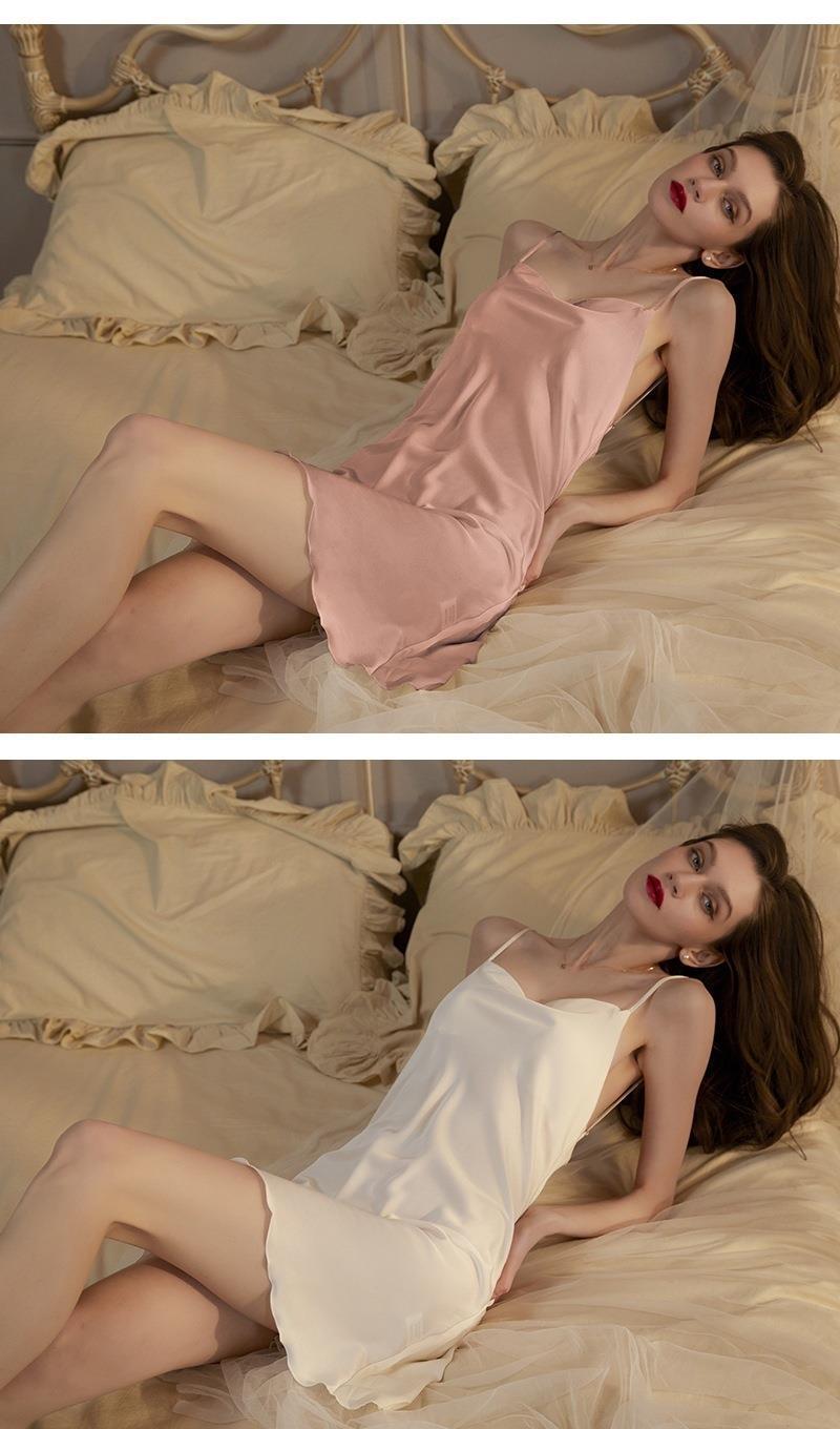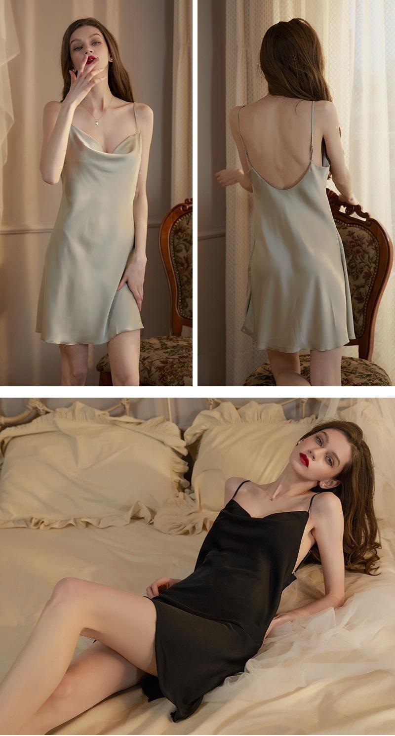 섹시한 파자마 여성의 스윙 칼라 슬링 나이트가운 여성의 여름 2024 백리스 아이스 실크 얇은 순수한 욕망 스타일 홈 옷스토어 가기
