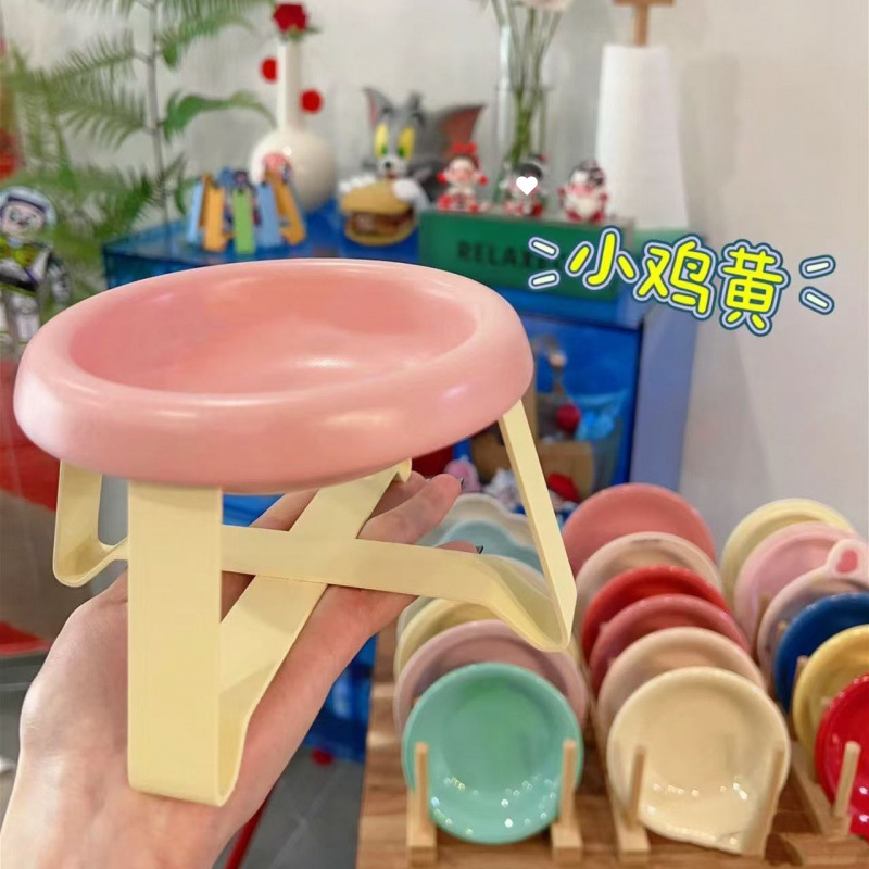 고양이 비행 접시 목 보호 철 랙 높은 색상 가치 애완 동물 세라믹 고양이 그릇 홀더 곡물 그릇스토어 가기