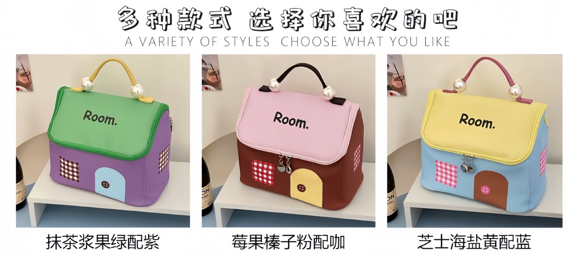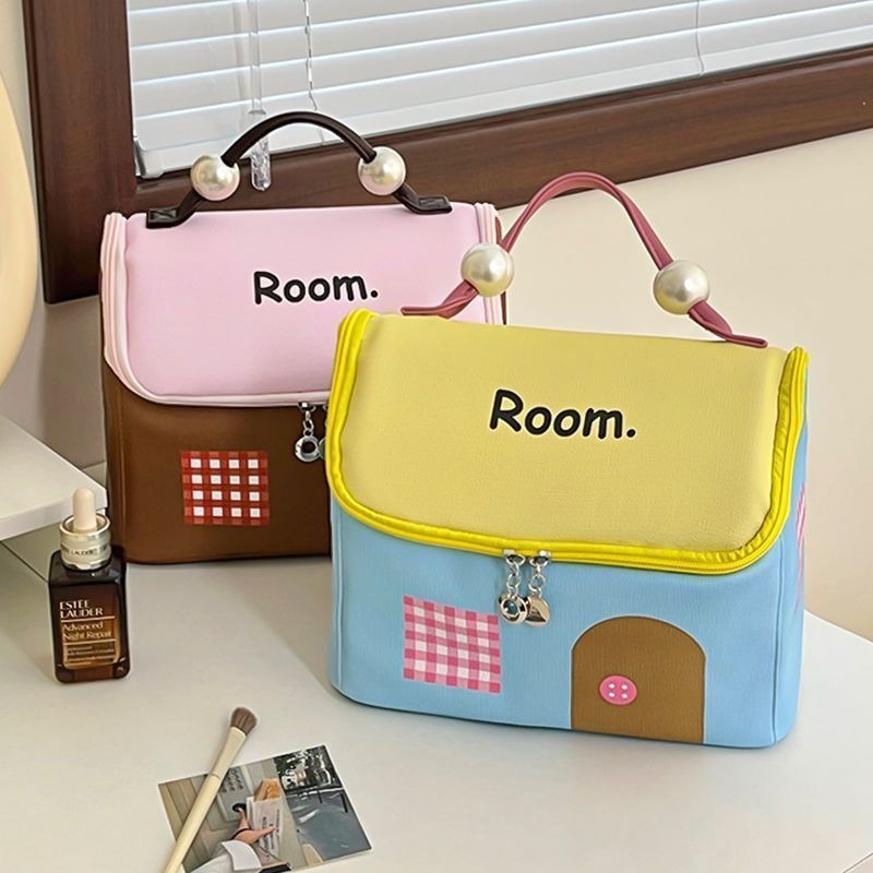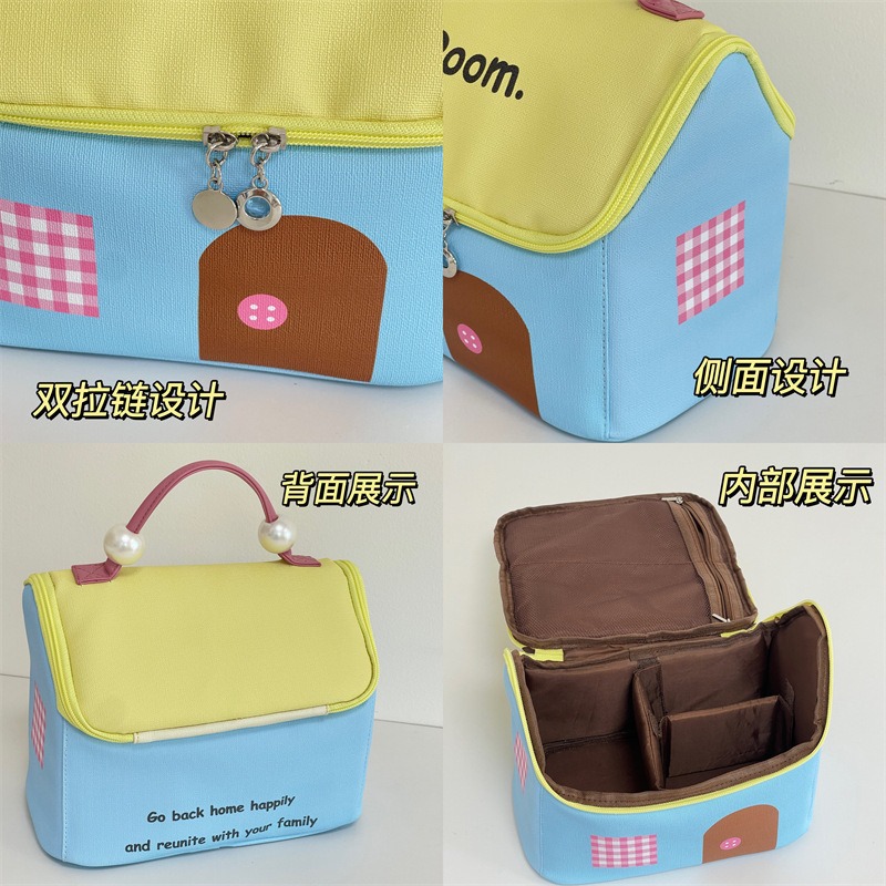 2025 새로운 귀여운 집 화장품 가방 여성의 휴대용 여행 화장실 휴대용 대용량 파티션 저장 가방스토어 가기