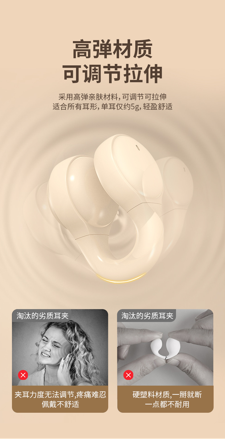 [베를린의 목소리] 2025 새로운 귀 클립 무선 블루투스 헤드셋 뼈 전도 높은 음질 귀 소음 감소