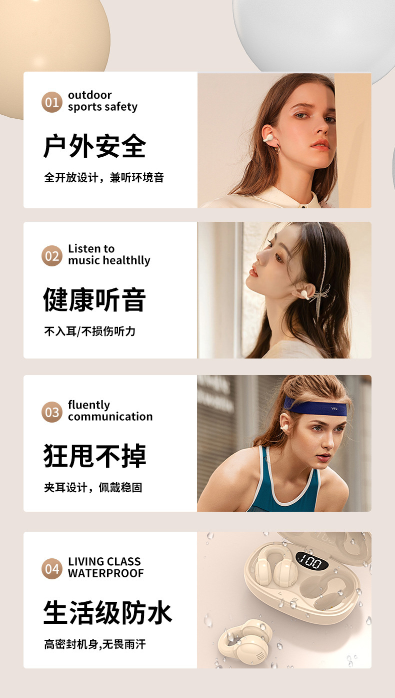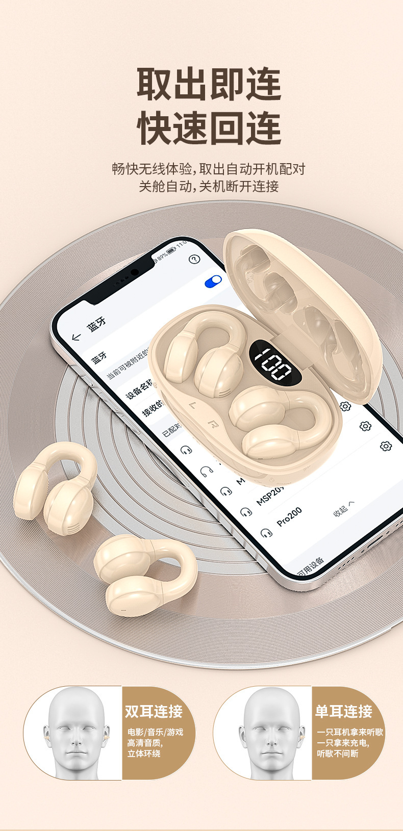 [베를린의 목소리] 2025 새로운 귀 클립 무선 블루투스 헤드셋 뼈 전도 높은 음질 귀 소음 감소스토어 가기