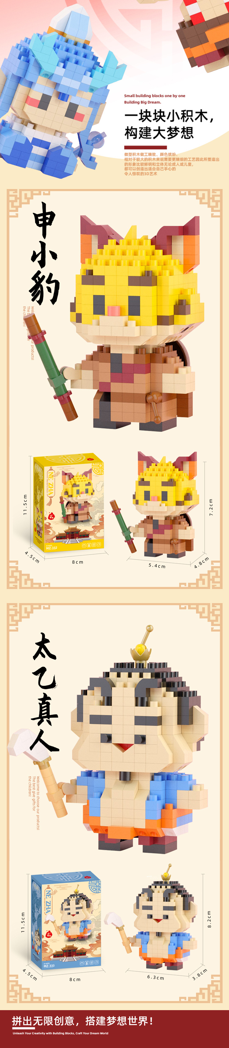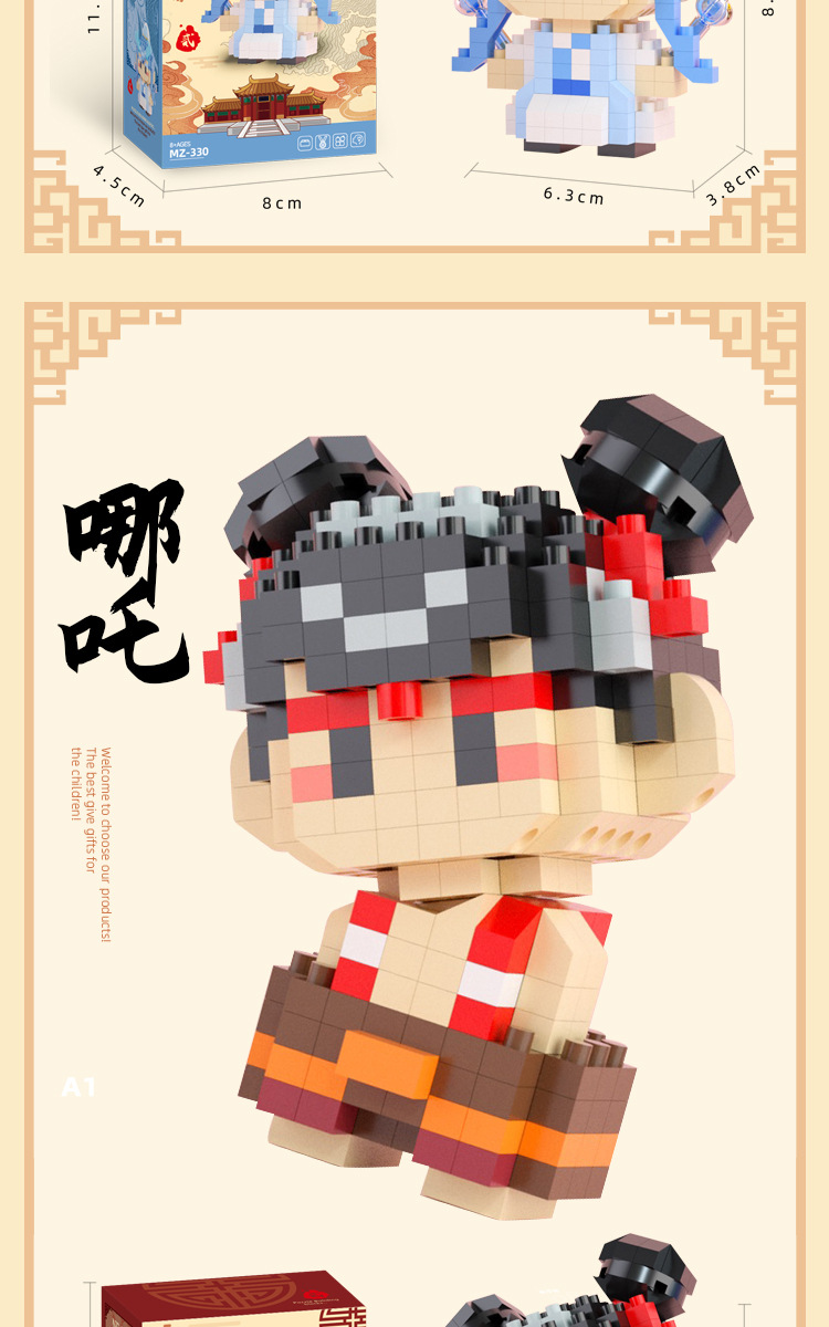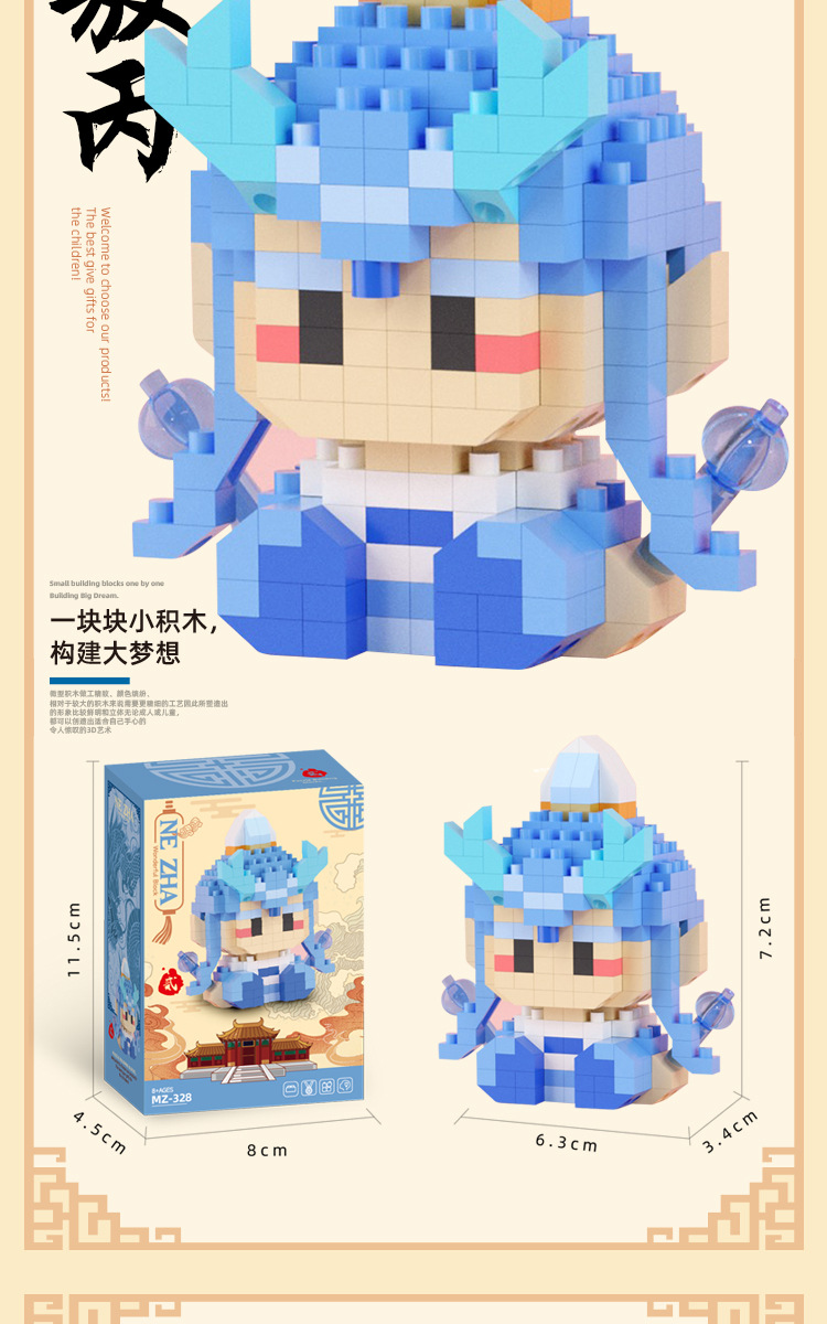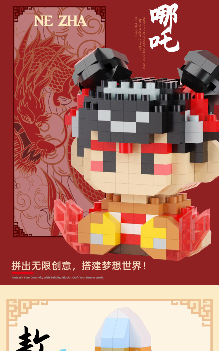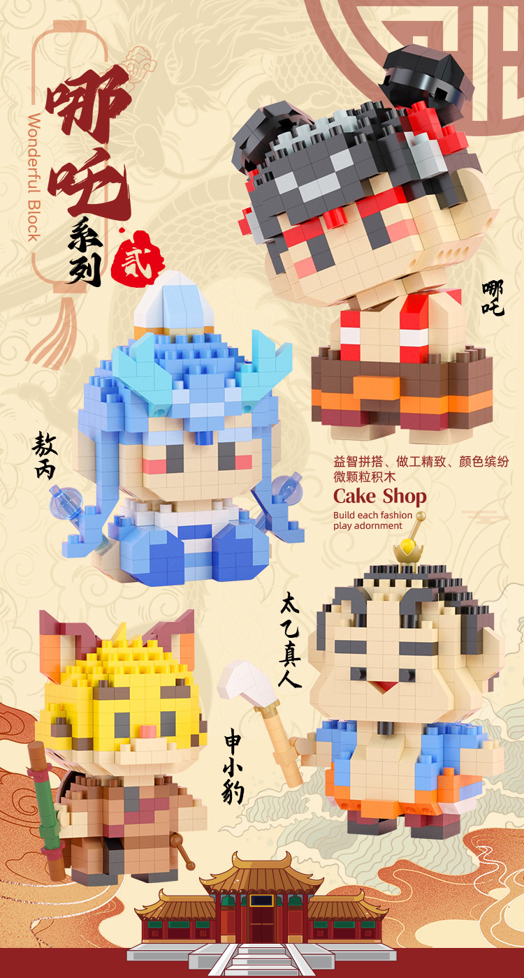 2025 신제품 Nezha Aobing 작은 입자 빌딩 블록 손으로 만든 장식품 조립 소년 교육 조립 장난감 및 선물스토어 가기