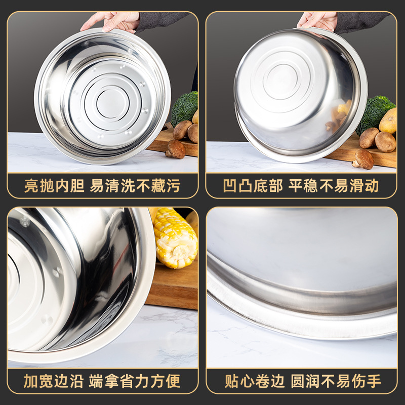스테인레스 스틸 그릇 식품 등급 대형 식당 철 그릇 가정용 주방 스테인레스 스틸 그릇 야채 세척 식기 세트 분지 세트