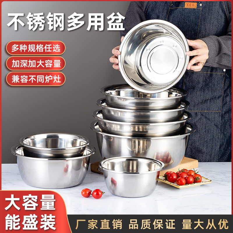 스테인레스 스틸 그릇 식품 등급 대형 식당 철 그릇 가정용 주방 스테인레스 스틸 그릇 야채 세척 식기 세트 분지 세트스토어 가기
