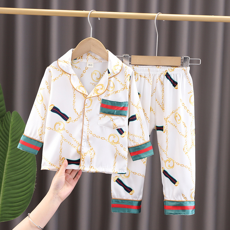 어린이 아이스 실크 파자마 에어컨 세트 초박형 외부 착용 봄과 가을의 긴 소매 바지 소년 소녀 2 피스 홈 만화스토어 가기
