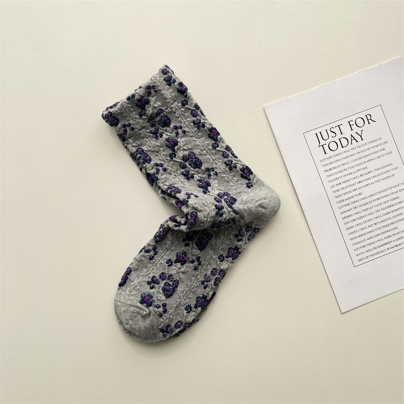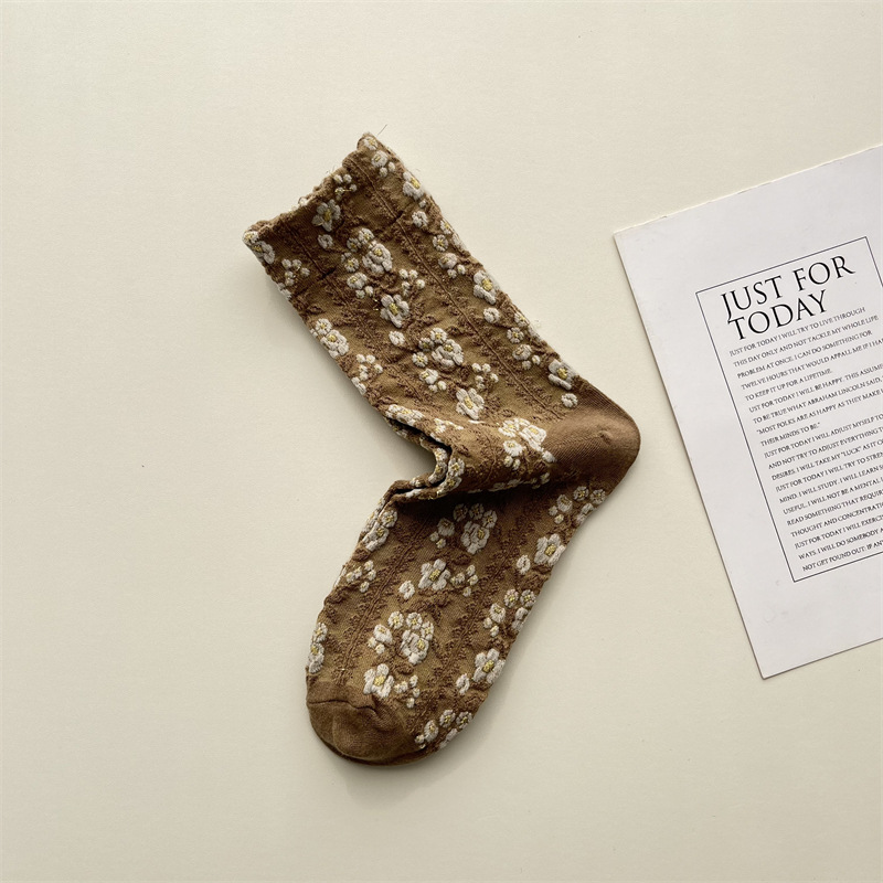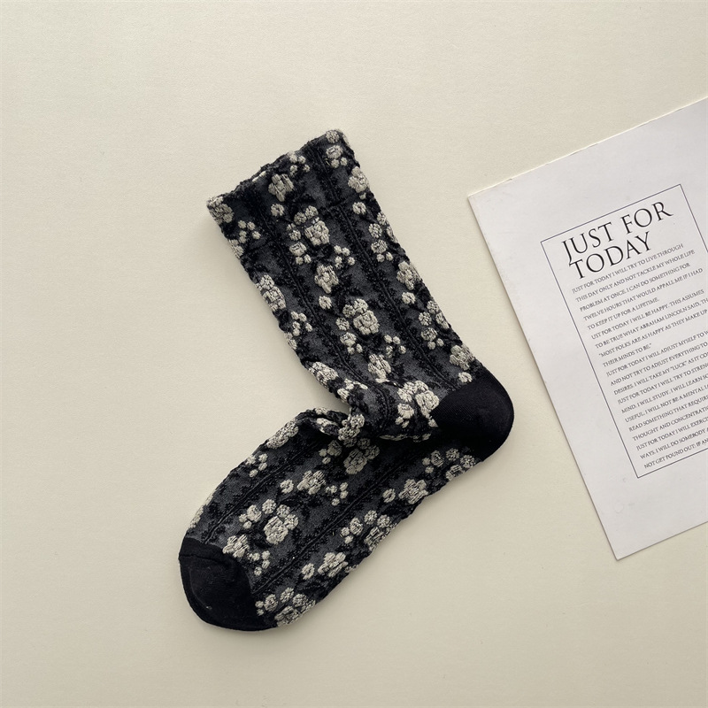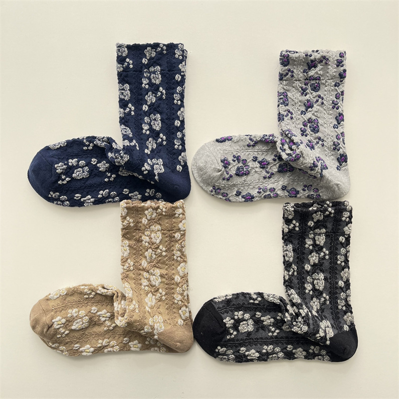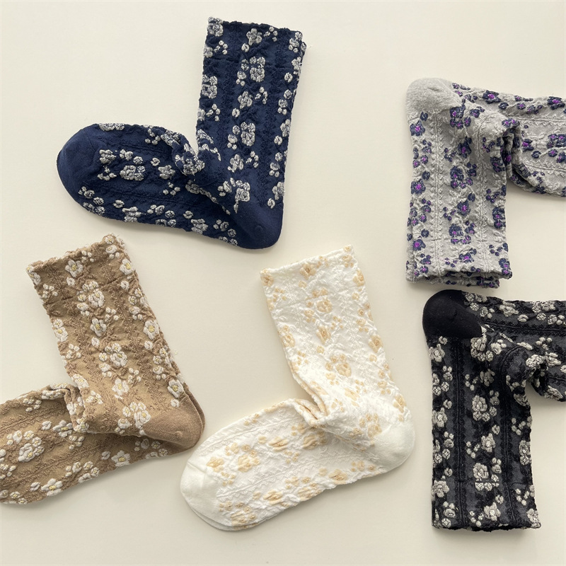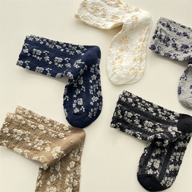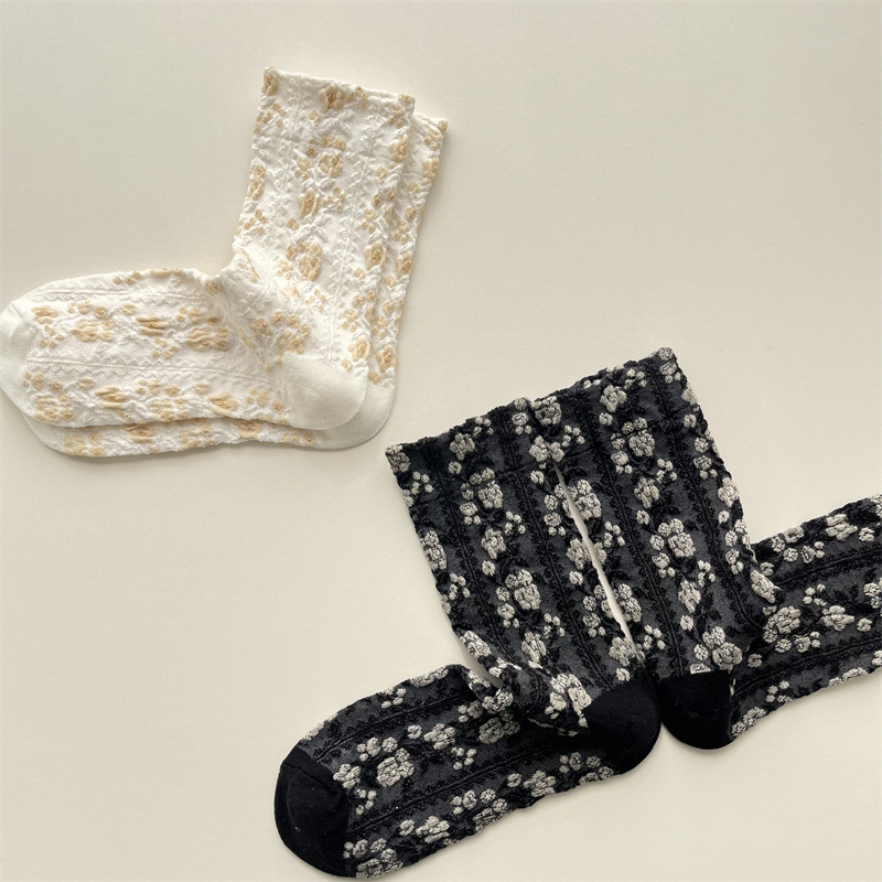 일본 스타일 레트로 밝은 실크 양각 꽃 봄 및 가을 민족 스타일 작은 꽃 스타킹 예술적 올매치 코튼 양말스토어 가기