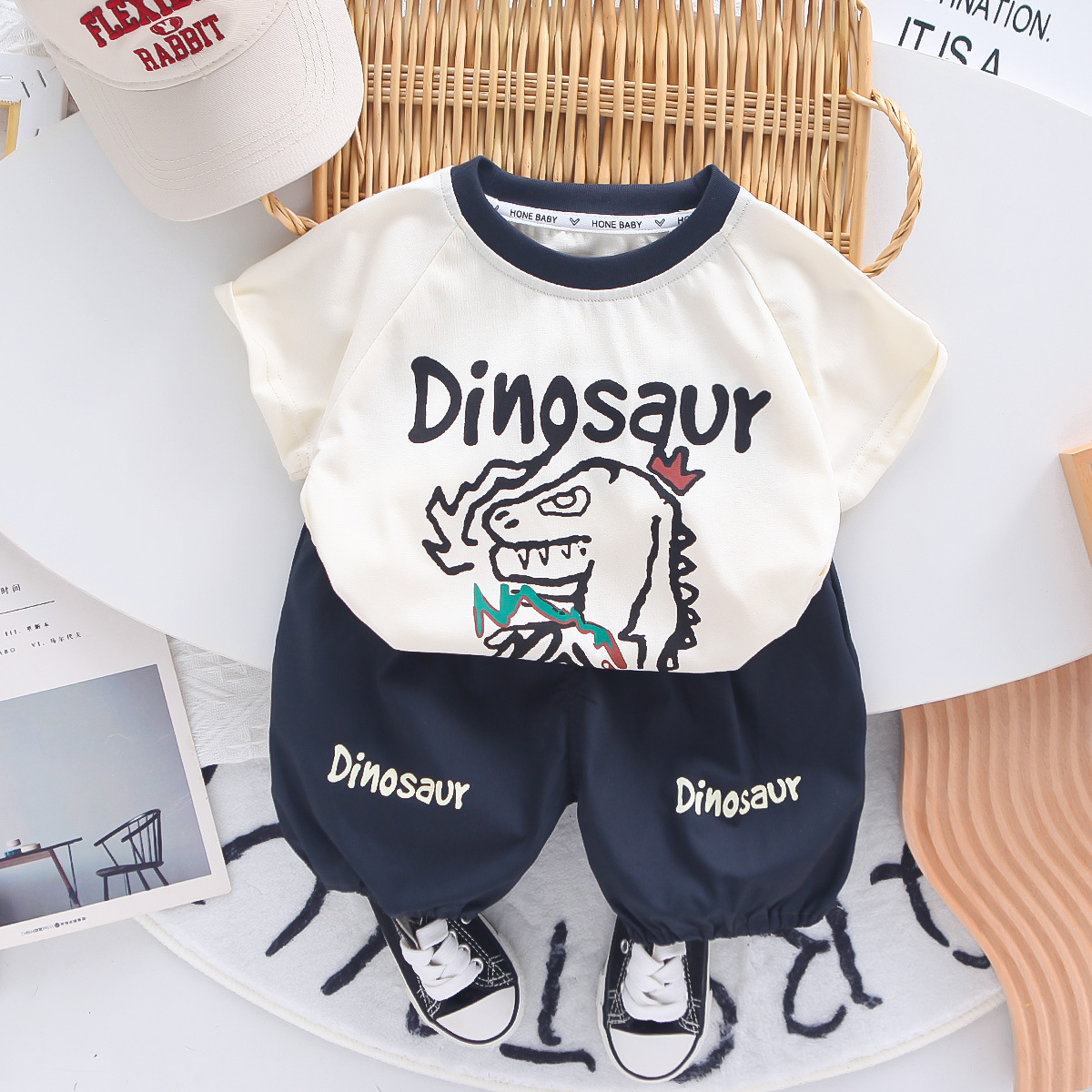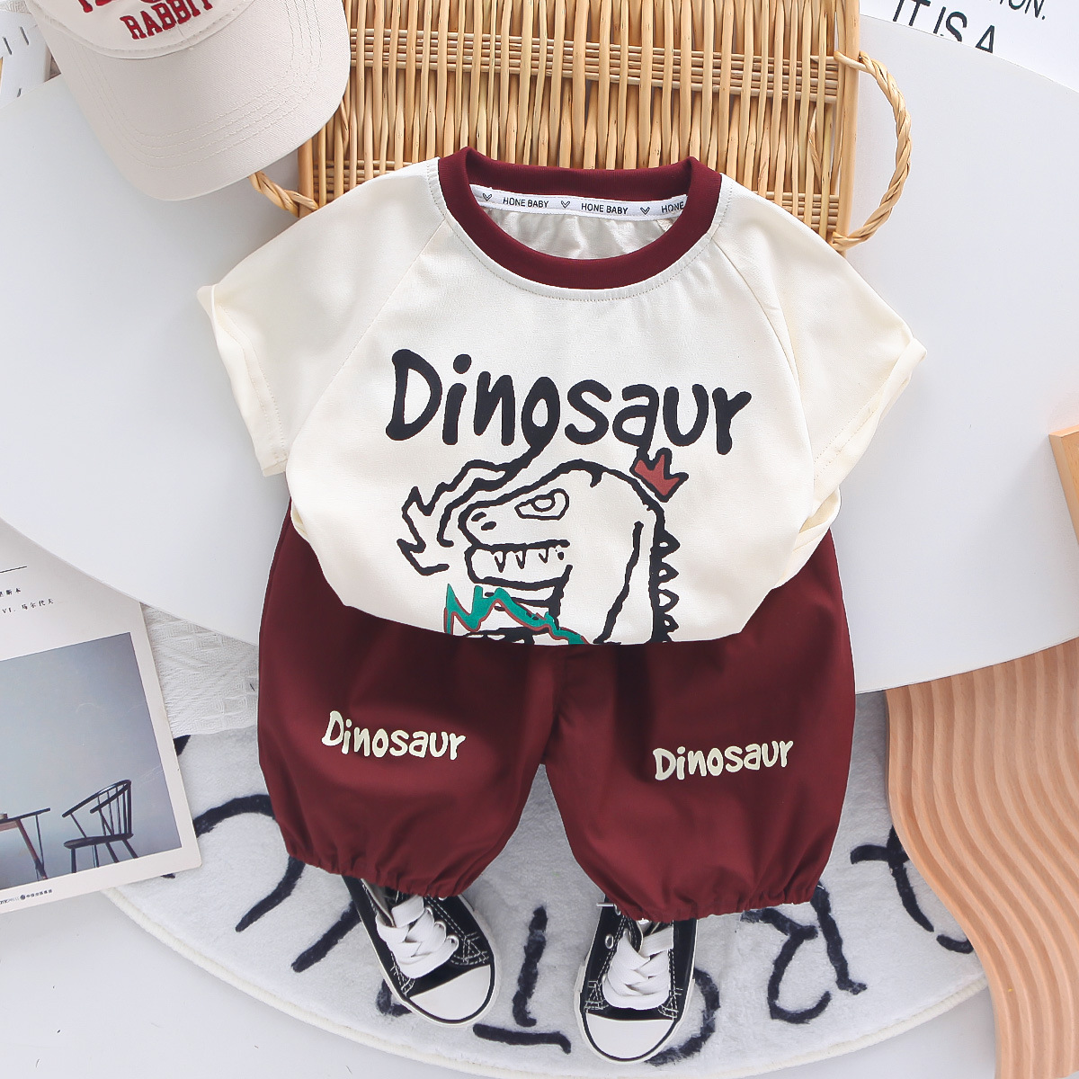 • 브라운 X2507 잉글리시 공룡 반팔 투피스 세트