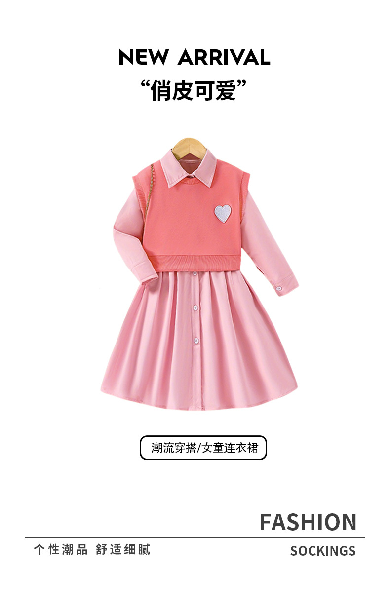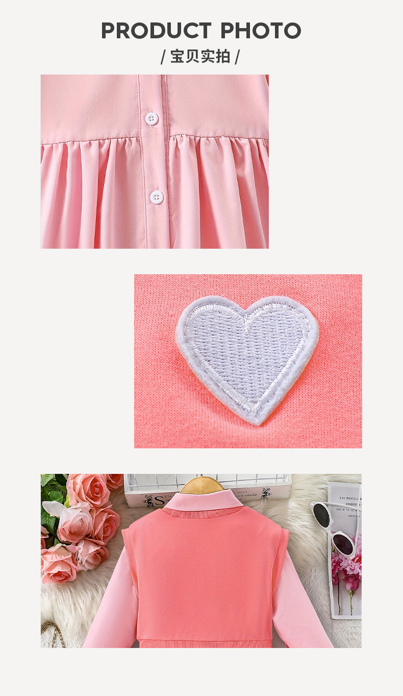 국경 간 소녀 셔츠 원피스 봄 핑크 조끼 니트 조끼 사랑 자수 대학 소녀 투피스 세트