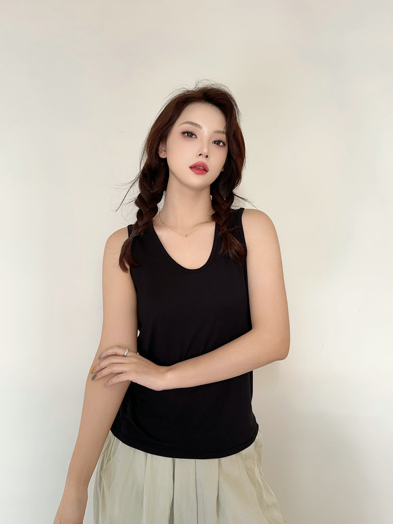 2025 모달 플러스 대형 조끼 여자 여름 얇은 느슨한 플러스 사이즈 베이스 셔츠 홈 올 매치 탑스토어 가기