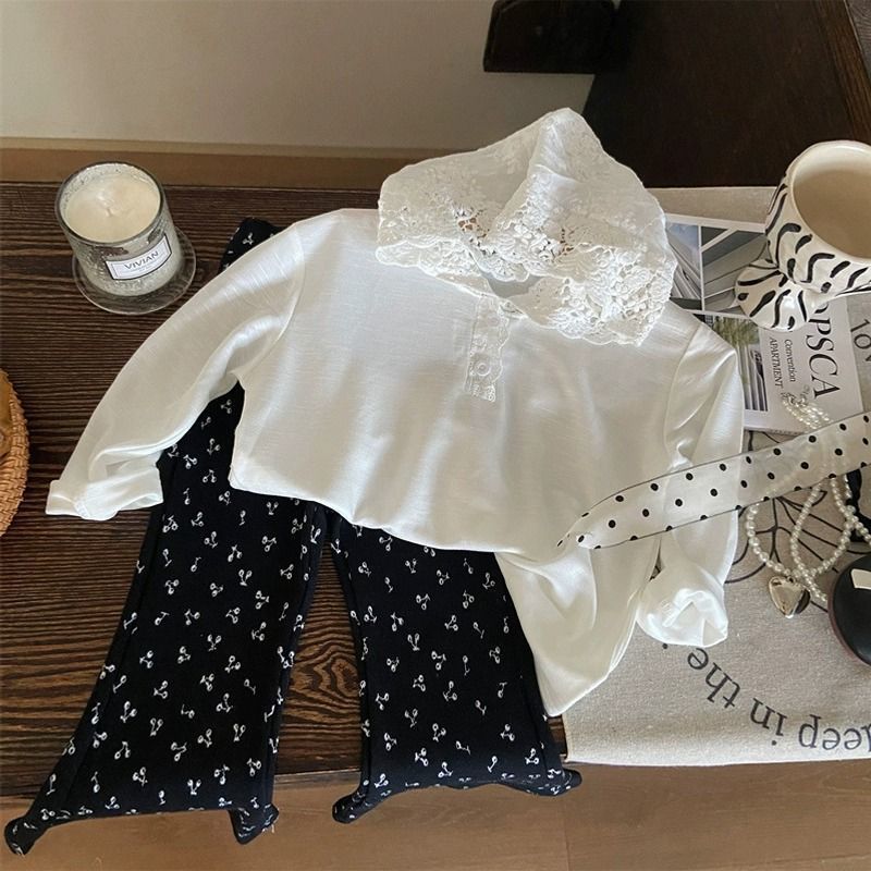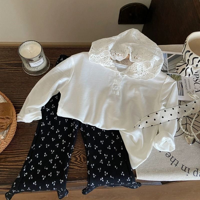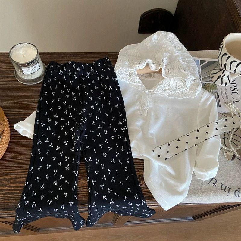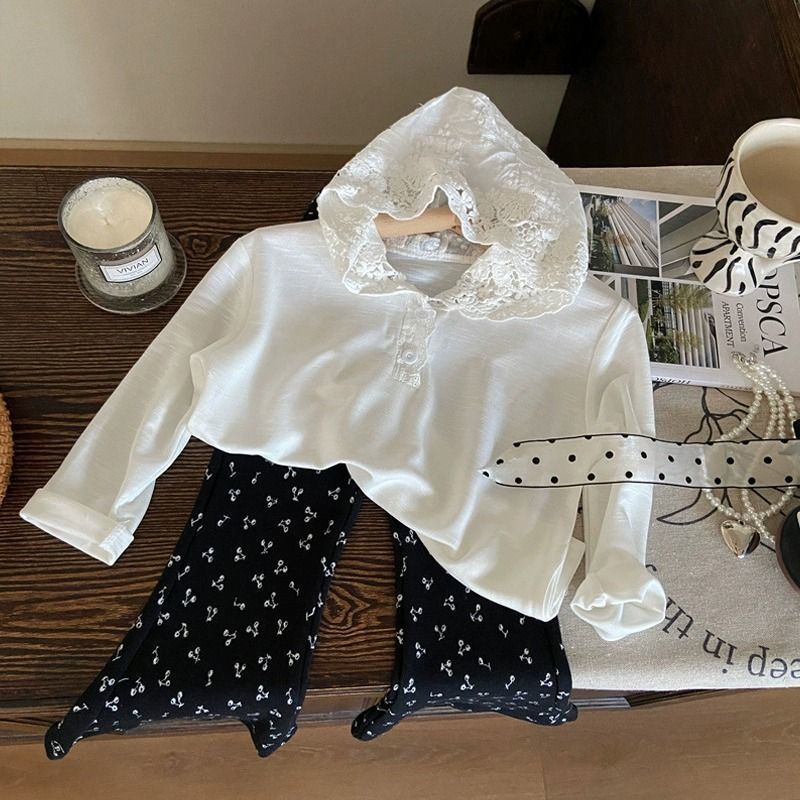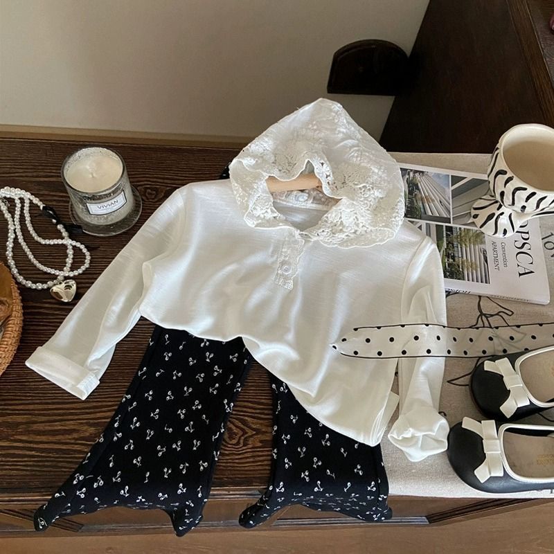 한국 아동복 2025 새로운 봄 소녀 레이스 긴팔 티셔츠 어린이 유행 후드 탑 세트 패션