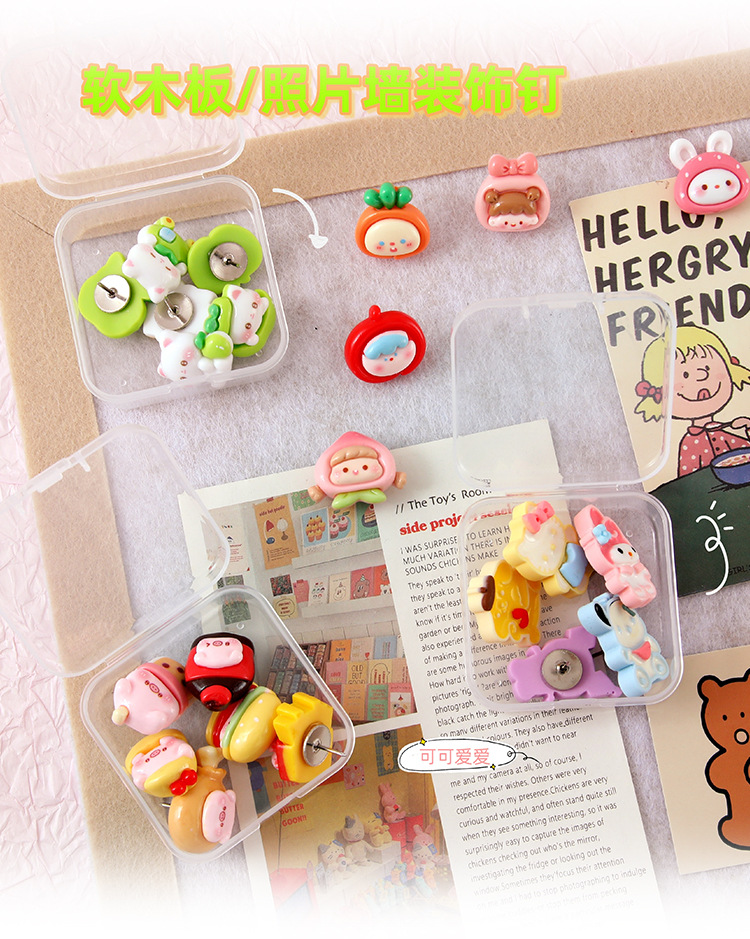 컬러 썸택 창조적 인 사무실 썸택 코르크 보드 프레스 손톱 귀여운 만화 사진 벽 메시지 보드 장식 손톱 도매