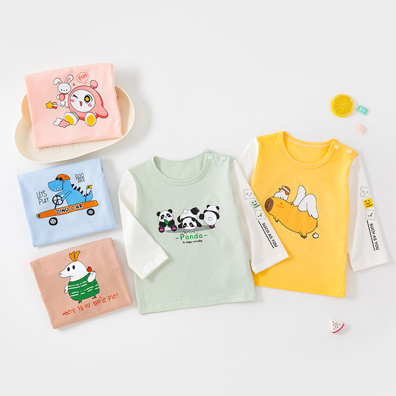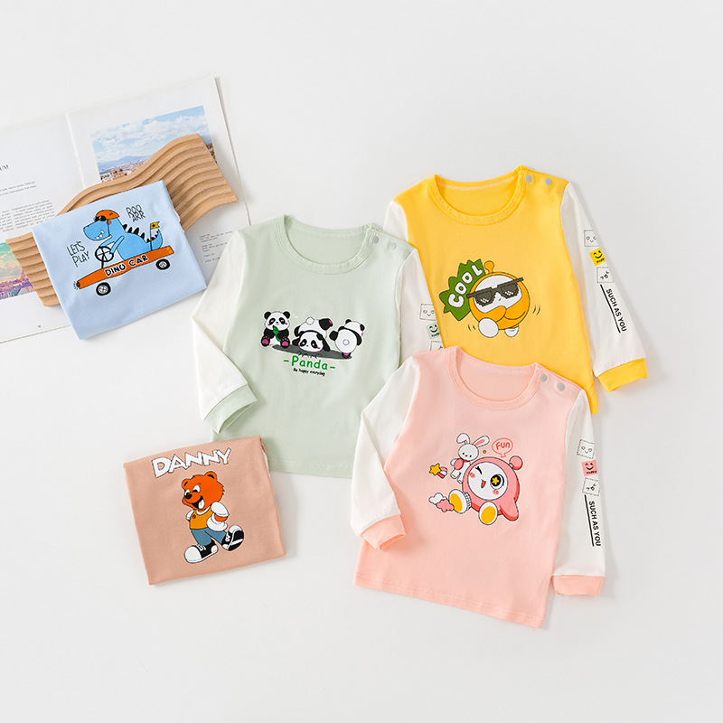 아기 봄과 여름 새로운 티셔츠 어린이 오데일 긴 소매 속옷 얇은 아기 홈 옷 만화베이스 셔츠스토어 가기