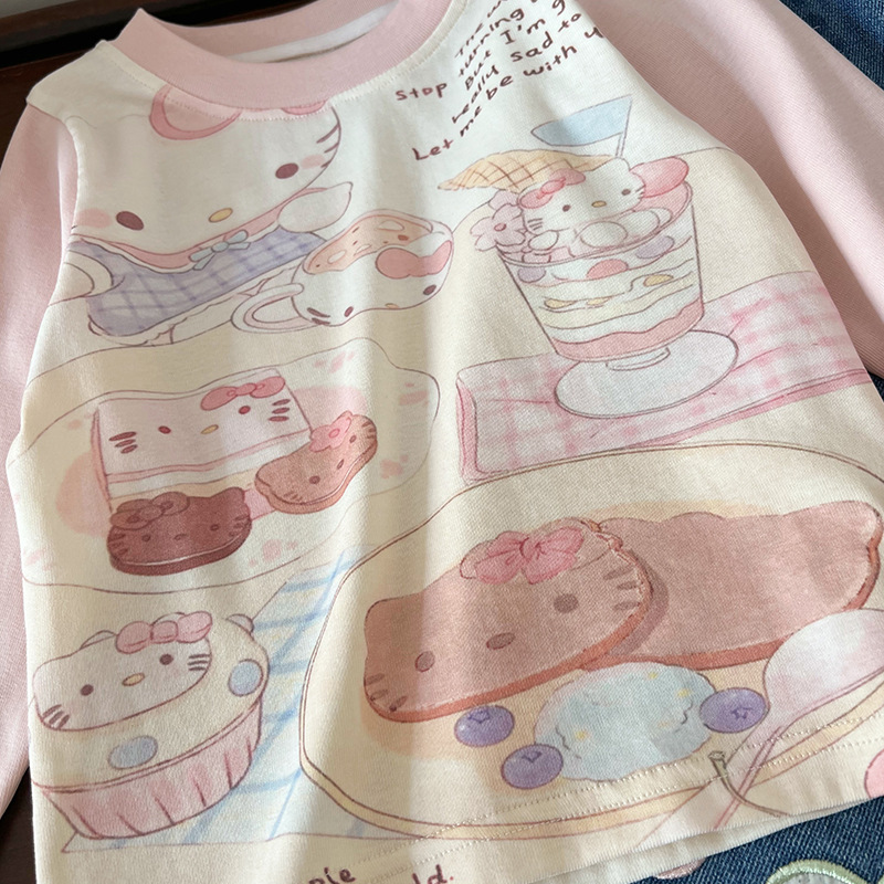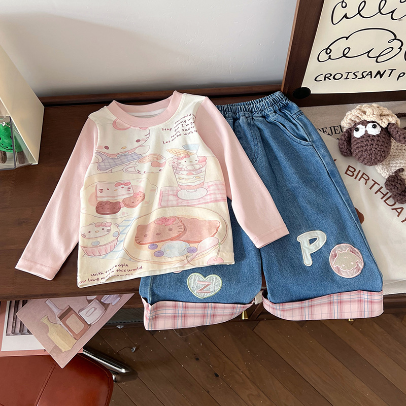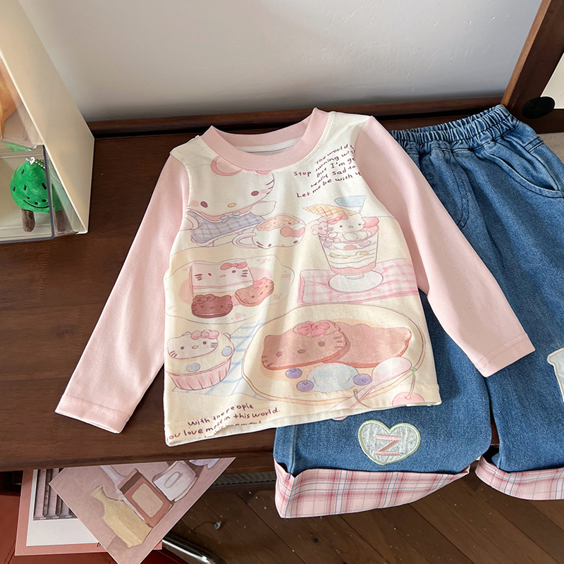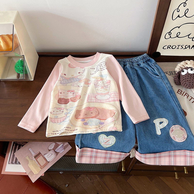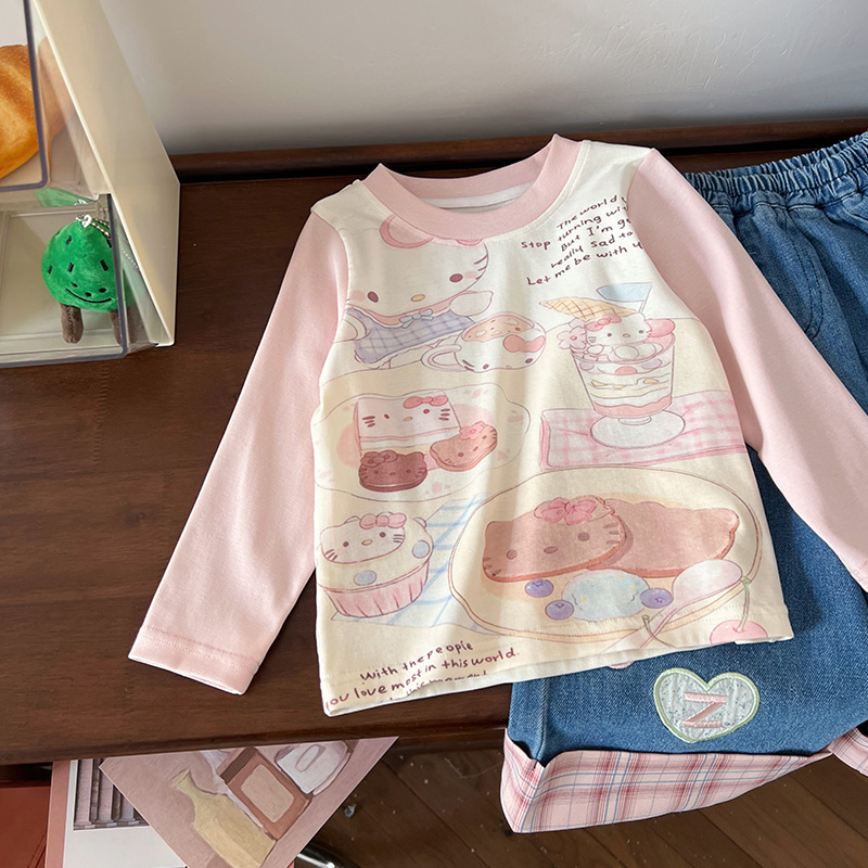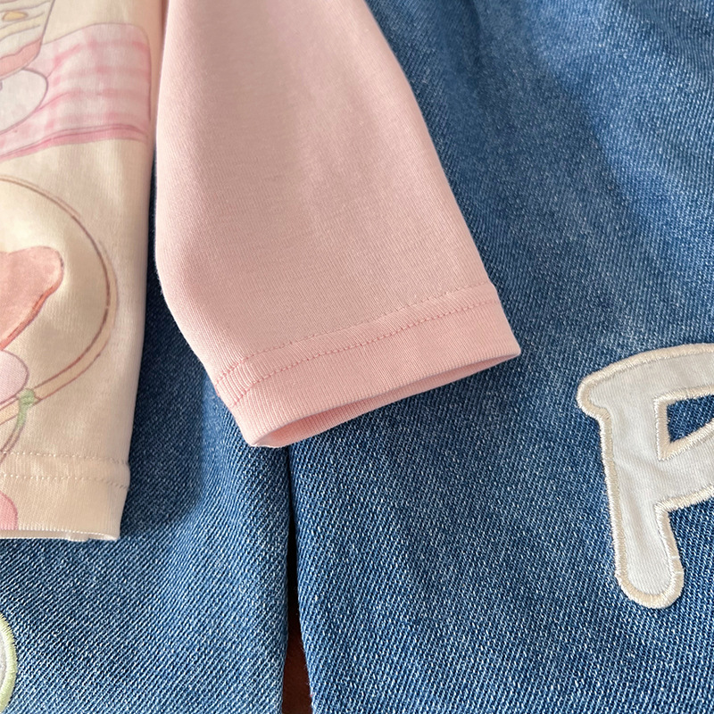 [재고] 어린이 세트 2025 봄 새 만화 낙서 인쇄 티셔츠 편지 격자 맞춤법