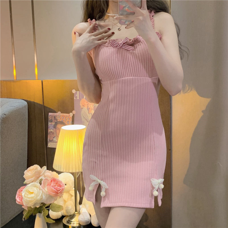 2025 년 봄 새로운 일본 달콤한 활 작은 슬링 짧은 원피스 카디건 투피스 세트스토어 가기