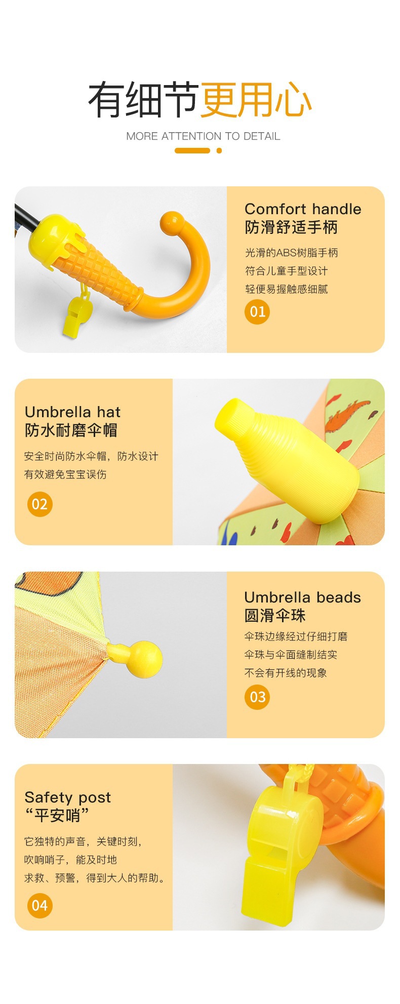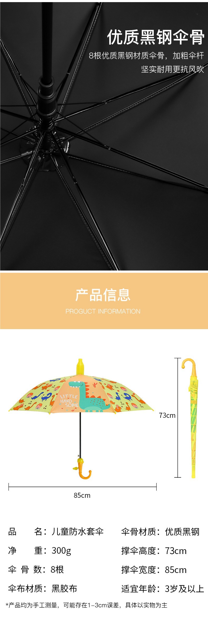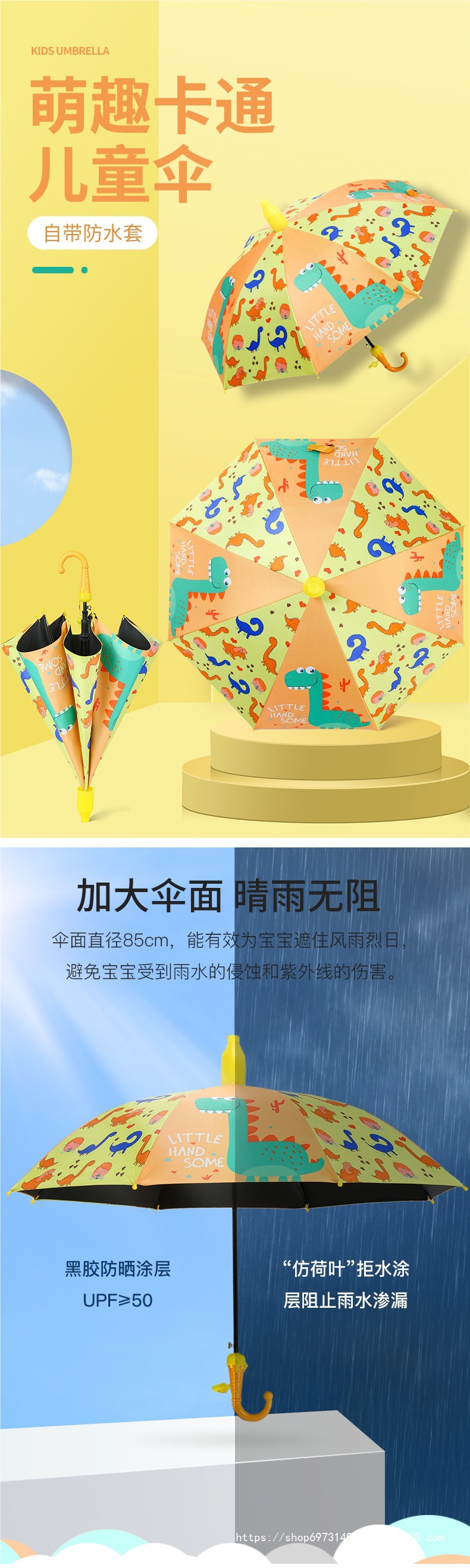 • 업그레이드된 반사 스트립 어린이용 우산-노란 공룡(무료 방수 커버)