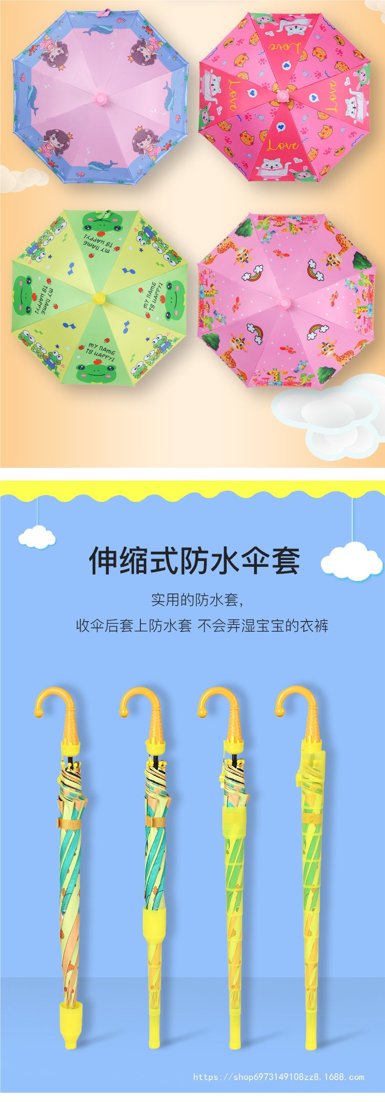 어린이 우산 소년과 소녀 초등학교 어린이 유치원 아기 귀여운 자동 인쇄 가능한 로고 어린이 우산스토어 가기
