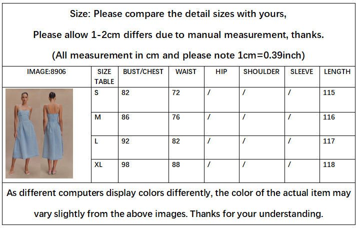 2025 유럽과 미국의 섹시한 여성 국경 여름 새로운 스트랩없는 솔리드 컬러 민소매 데님 슬링 원피스 8906스토어 가기