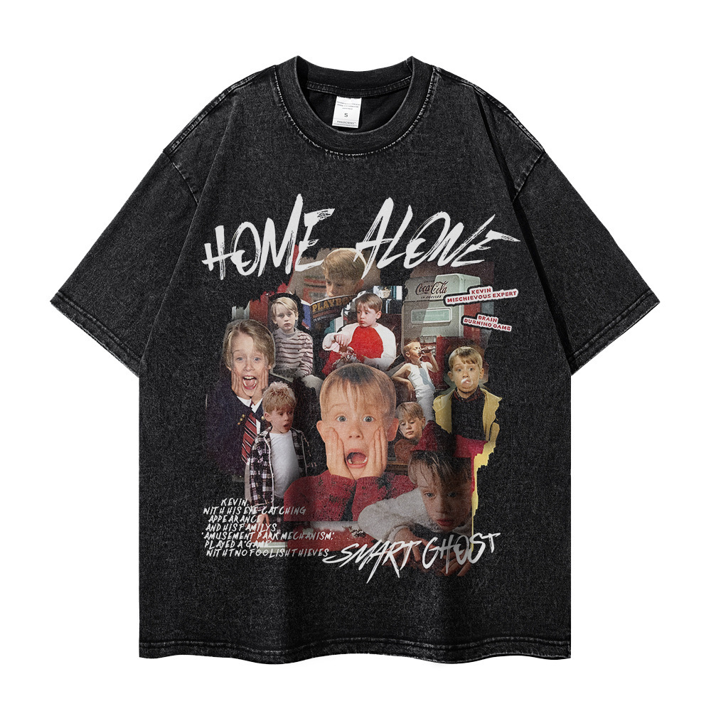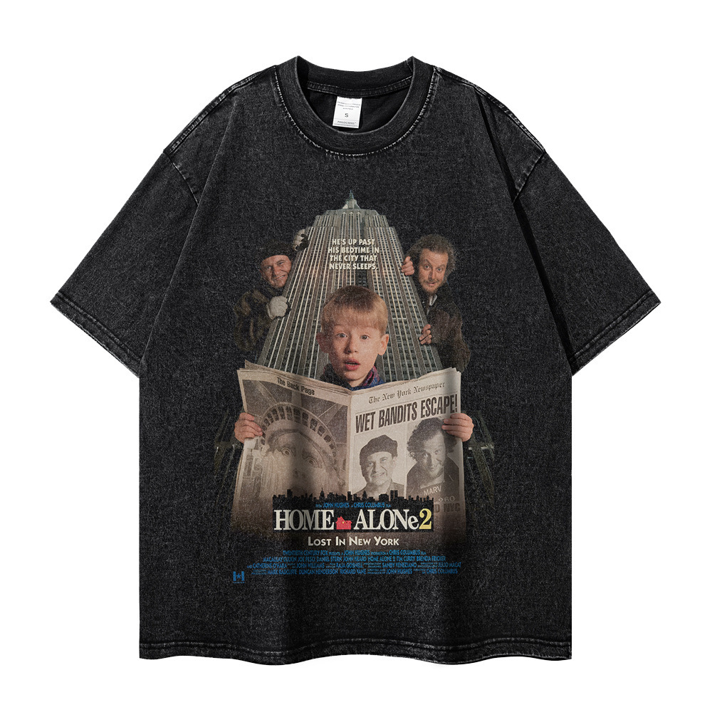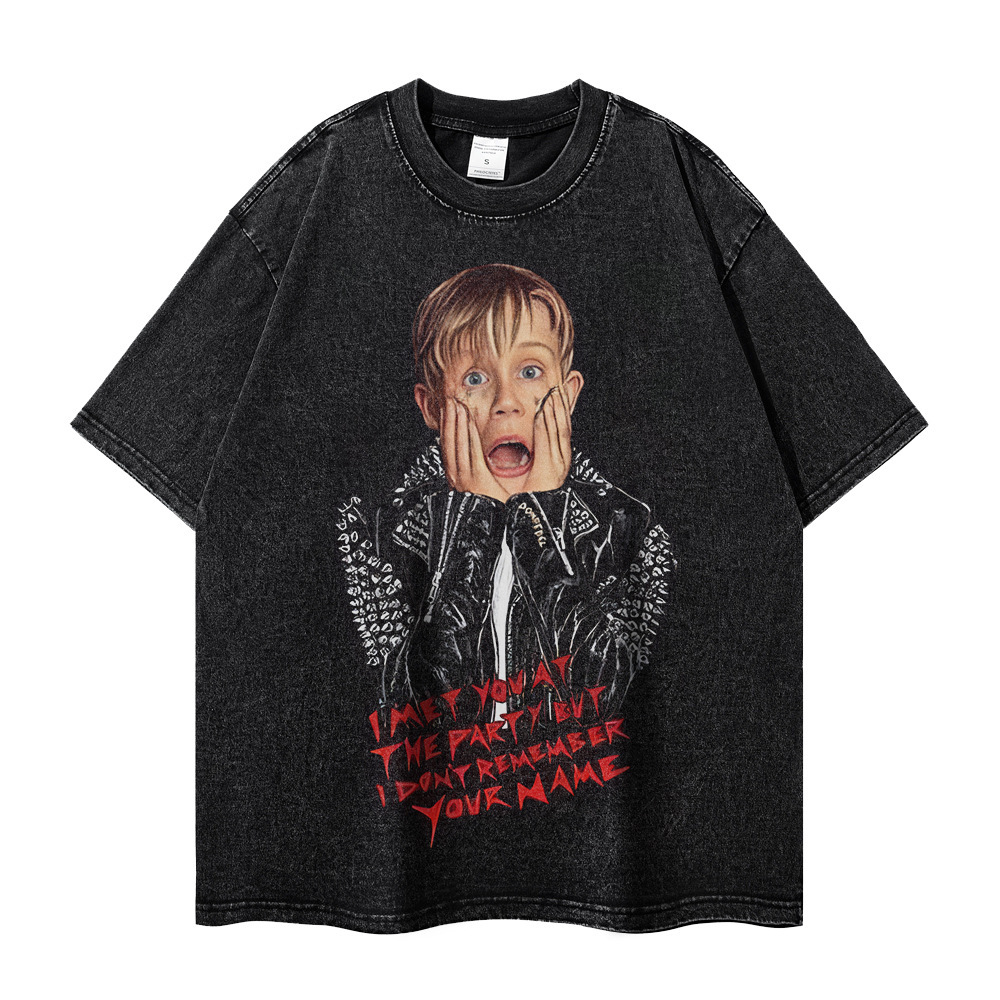 미국 복고풍 반팔 남성과 여성의 세탁 오래 된 느슨한 크루 넥 영화 포스터 직접 사출 인쇄 티셔츠 패션 브랜드스토어 가기