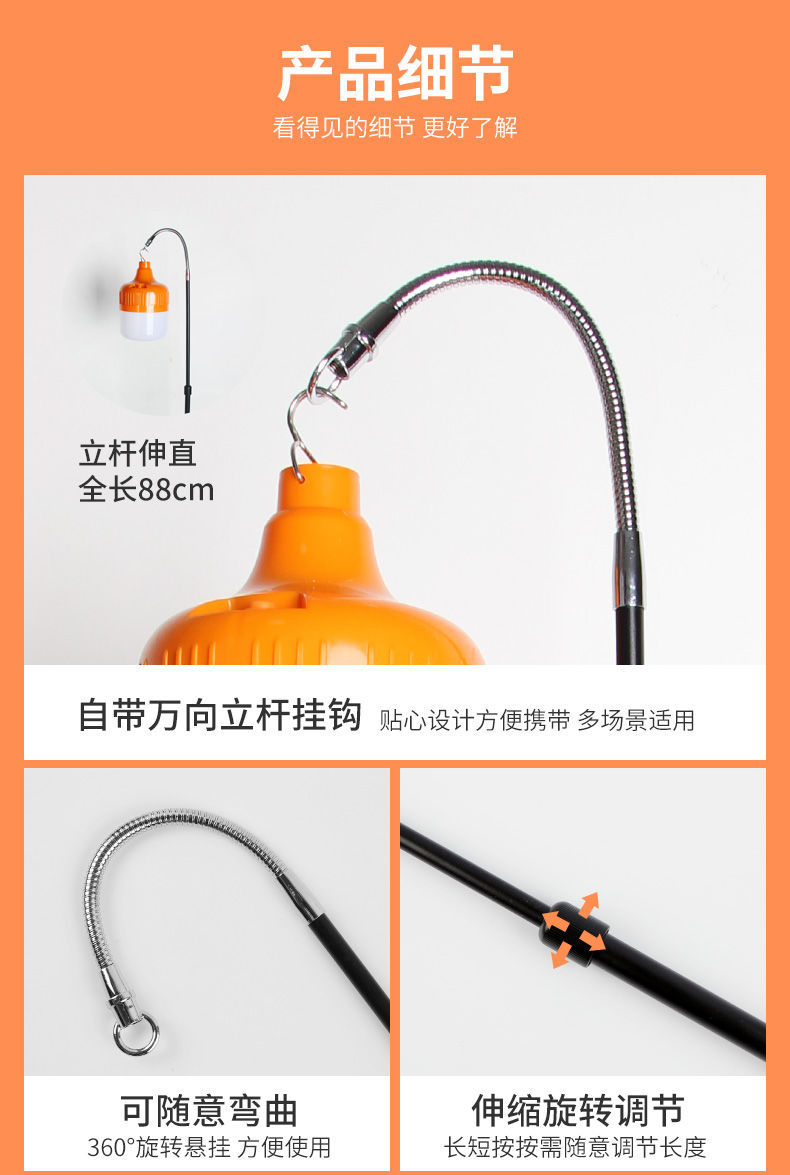 스톨 나이트 마켓 특별 스톨 램프 충전 시장 슈퍼 브라이트 롱로드 휴대용 텔레스코픽 브래킷 LED 클립 조명 램프스토어 가기