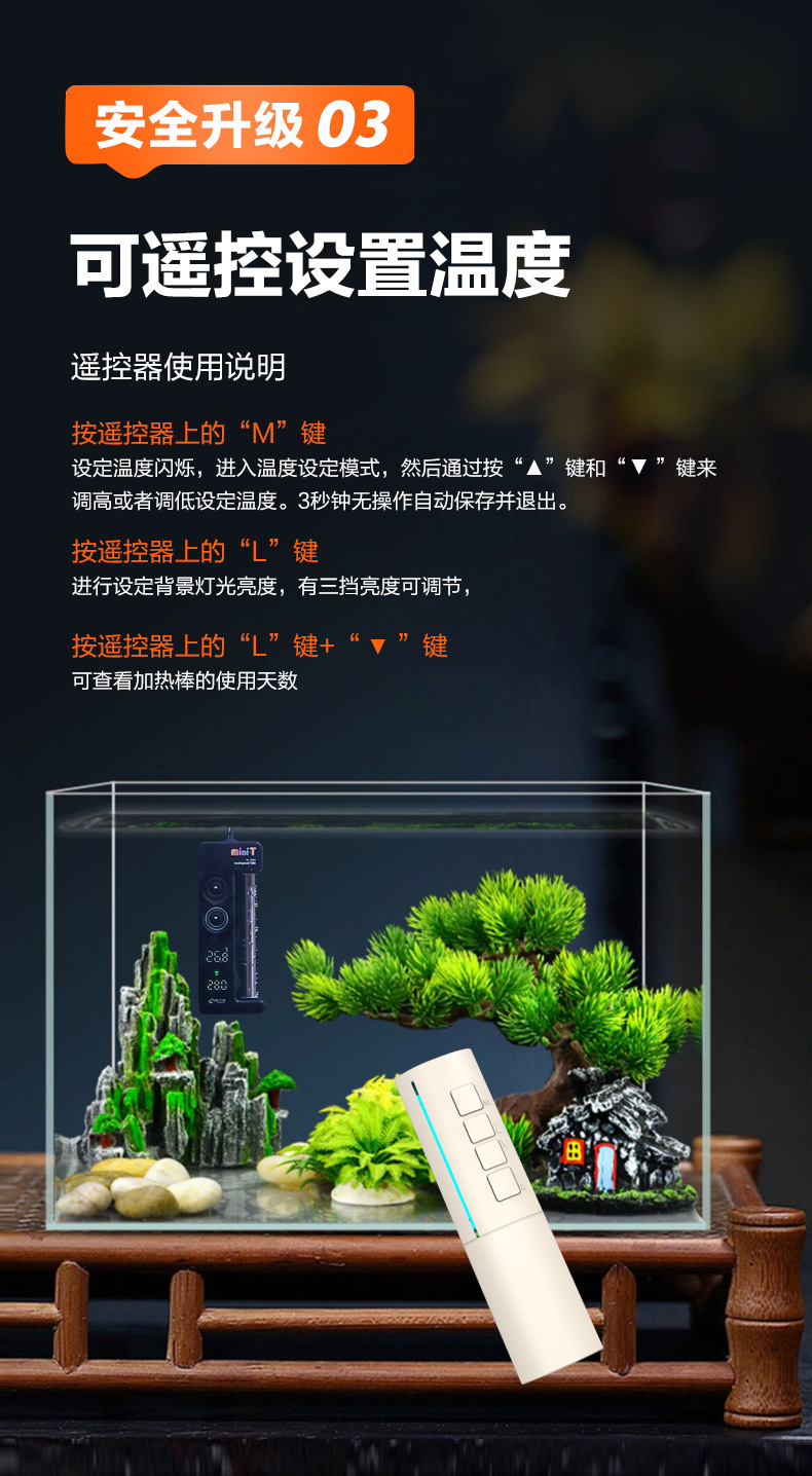 • Hangzhijing mini-T 가열 막대 50W 버튼 조절 + 리모콘